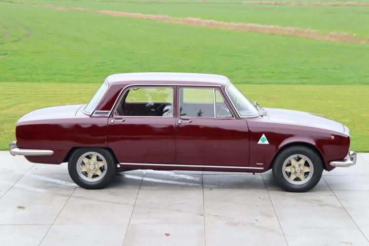 The Berlina has been carefully and passionately maintained, mostly by Alfa Romeo specialists. In 2022, the rear section of the exhaust was replaced with stainless steel. The front and middle sections of the exhaust were also renewed. All four shock absorbers were replaced with Koni units. The cardan shaft was also overhauled and the bearings and seals were replaced. The engine compartment looks neat and dry. The four Toyo tyres all round still have plenty of tread. The 4-cylinder engine has a capacity of 1779 cc, delivers 116 hp and has twin carburettors. The 5-speed manual gearbox, together with rear-wheel drive, ensures the ultimate driving experience. The car starts, drives and shifts gears well.