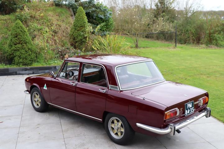 This beautiful Alfa Romeo 1750 Berlina Series 2 began its life in 1971 and was imported to the Netherlands in 2024. The paintwork was repainted in 2022 and has been well preserved since then, with only a few signs of wear. It would be good to have the paintwork polished again for a deeper shine. The “Cromodora” star rims are made of aluminium and are still in good condition. The bodywork has good seam fits and is rust and damage free. The rubbers are also intact and the lighting is fresh. All in all, it is in good overall condition, especially considering the age of the car.