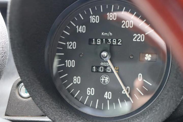 The Alfa has also been well maintained technically. Both the engine and the gearbox have been overhauled. Furthermore, the brakes have been overhauled and the alternator and battery have been replaced. The steering ball joint and exhaust have also been renewed. It is also equipped with red Koni shock absorbers and electronic ignition. The engine compartment looks neat and dry. The 4-cylinder engine has a capacity of 1962 cc and delivers 132 hp. The 5-speed manual gearbox, together with rear-wheel drive, ensures the ultimate driving experience. The rims are fitted with good Toijo tyres. The car starts, drives and shifts gears well.