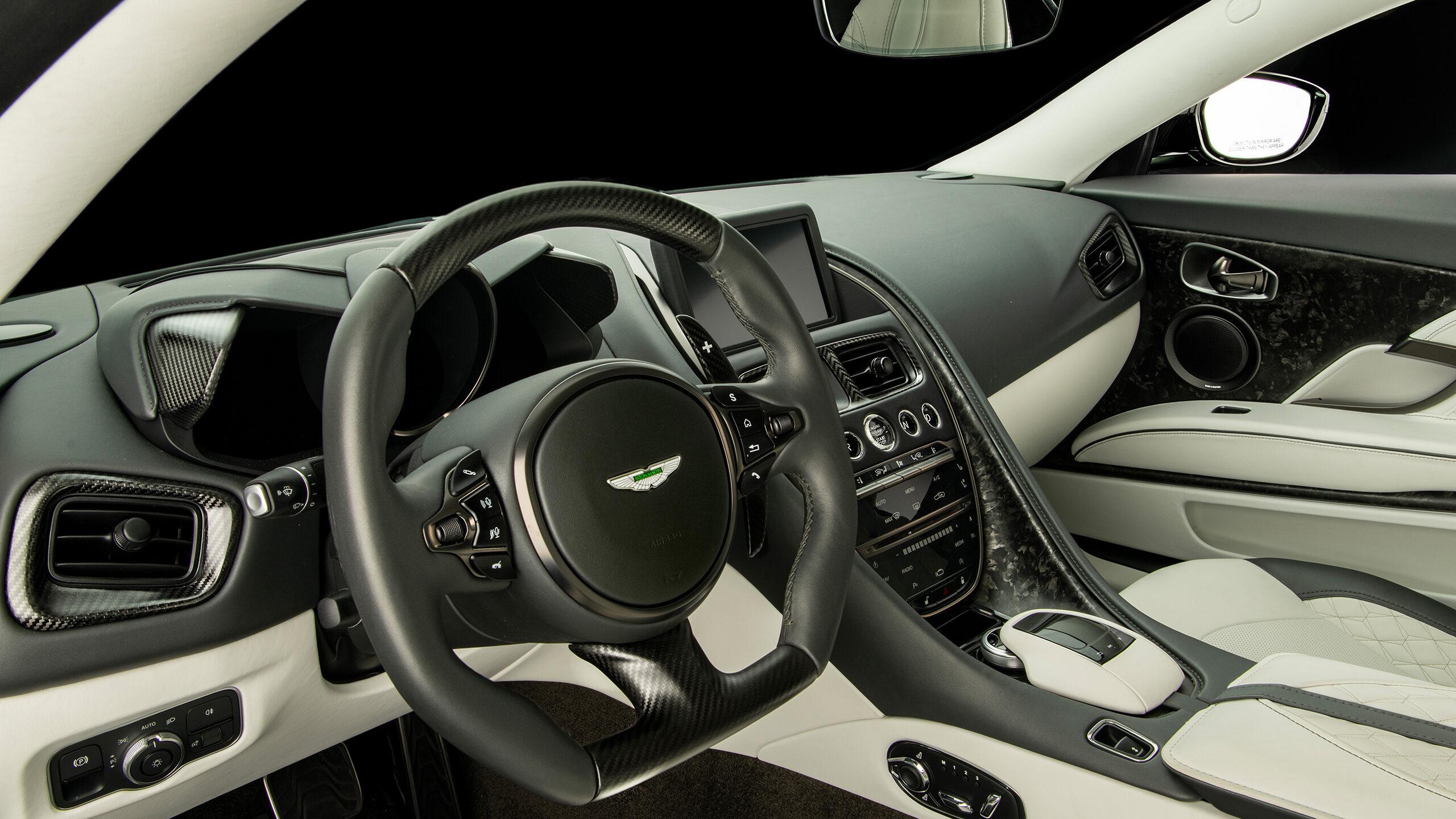 There’s 5.2 litres before the turbos spool up, so the DBS starts moving as soon as you squeeze the throttle, but when the turbos chip in, which they do from ludicrously low revs with hardly any throttle opening, the DBS lunges forward. It does this from 2000 rpm in any gear, and the deeper you’ve pressed the throttle, the deeper the V12 and its turbos will dig. It’s mighty and slightly terrifying performance,an eye-widening, jaw-slackening grunt that makes you suddenly more interested in the ability of the rest of the car and your connection with it, particularly in the wet. Happily, it’s all good news. Firstly, the ride is firm but fair, taking the edge off all manner of tricky Tarmac, while pitch and roll are well managed, giving the Ultimate a feeling of solid composure. Early DBSs felt soft at the rear, perhaps to aid traction, whereas the Ultimate feels all of a piece yet still finds remarkable traction. The steering is rather good, too, precise and slack-free, the nose obedient. The efforts are perhaps a fraction high but accurately convey the car’s mass.