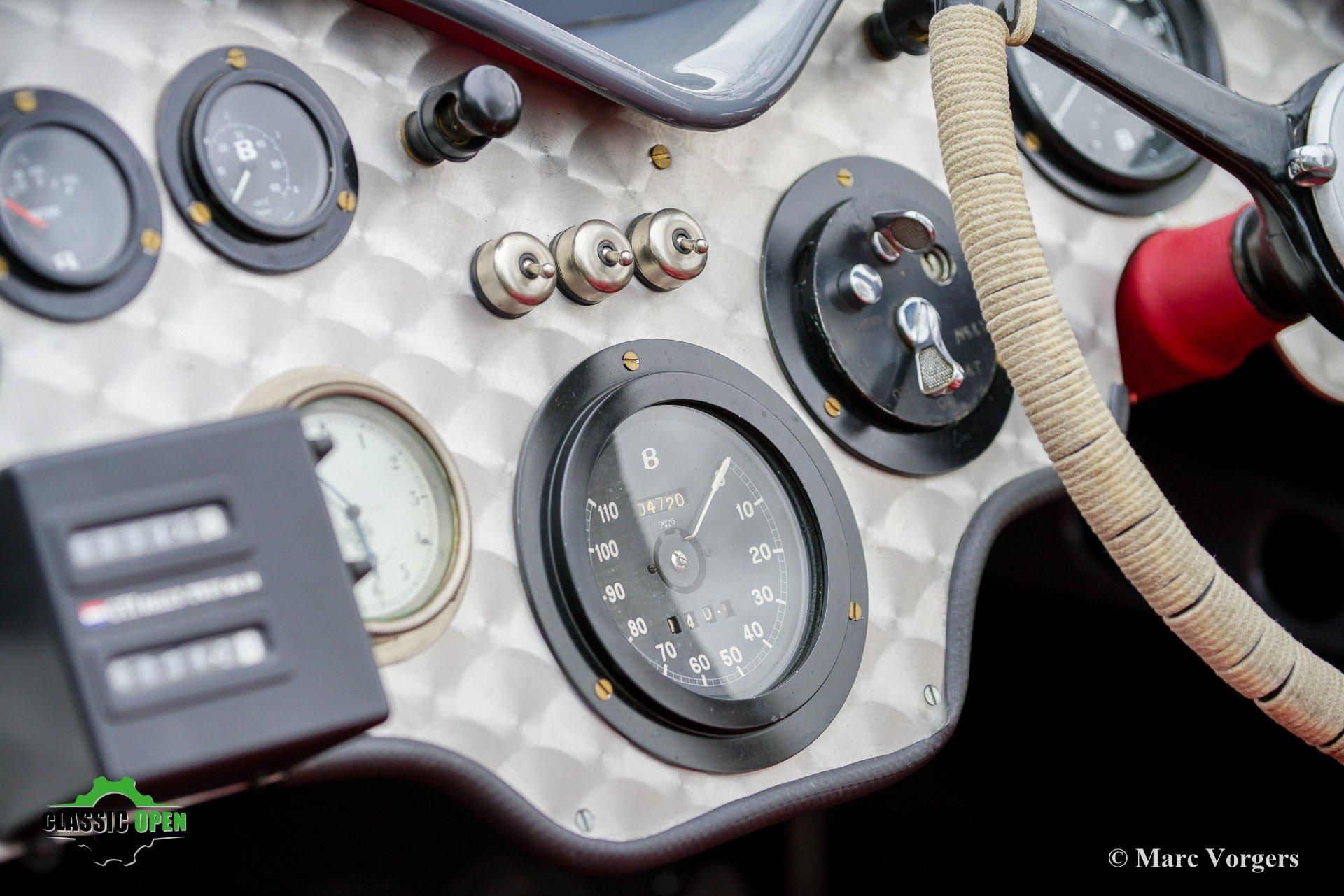Het aluminium dashboard is voorzien van een prachte set klokken en schakelaars.