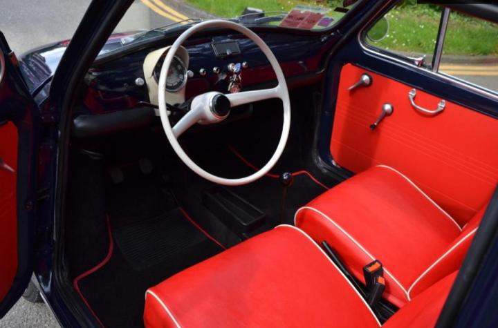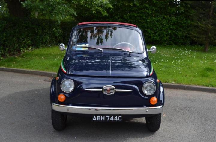 DCC is delighted to offer for sale this exceptional and rare Fiat 500 F "Otto Bulloni" model – a truly iconic classic, presented in the highly desirable midnight blue with a striking red and pearl white interior. This particular example is a very rare variant and has had just one UK owner since being imported from Milan by its previous keeper. It has covered 63,221 km (approximately 39,283 miles) and has been beautifully maintained throughout. A new red mohair roof has been recently fitted, complementing the elegant white bakelite steering wheel and classic round dash. The paintwork is immaculate and completely rust-free, reflecting the care this car has received. It also features a red mohair spare wheel cover and matching tool bag, along with a unique fuel tank and rocker cover specially painted in the colours of the Italian flag. Whitewall tyres complete the car’s timeless and stylish appearance. This charming Fiat has been fully recommissioned and recently serviced. It comes with a comprehensive history file including supporting documents and previous MOT certificates. The car will be sold with a fresh 12-month MOT and is ready to be enjoyed immediately. A superb classic car investment, offering both style and collectability. Nationwide delivery is available—please contact us for a quote. We’re also happy to provide a WhatsApp video walkaround upon request. Viewing is highly recommended. For more info visit www.dcc.co.uk or message us via WhatsApp using +44(0)20 8989 0001. Part exchange is welcome. Our numerous 5-star customer reviews are available to view on AutoTrader & Google. DCC is a professional, friendly family run business, with an excellent reputation, that we have built up during our 40 years in the industry. During your time spent with us at DCC you can always expect a relaxed, non-pressurised atmosphere where you can view vehicles at your leisure whilst enjoying our huge collection of motoring memorabilia in our quirky underground boutique showroom. We operate a 'viewing by appointment only' policy, please email or phone to arrange., Full service history, Left-hand drive, Blue, @dcc_ltd - Follow Us On Instagram & Twitter - @dcc_ltd, £15,950, this is an imported vehicle