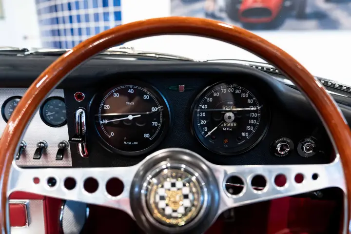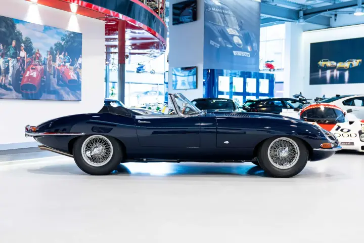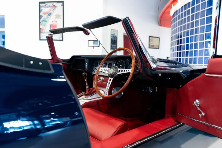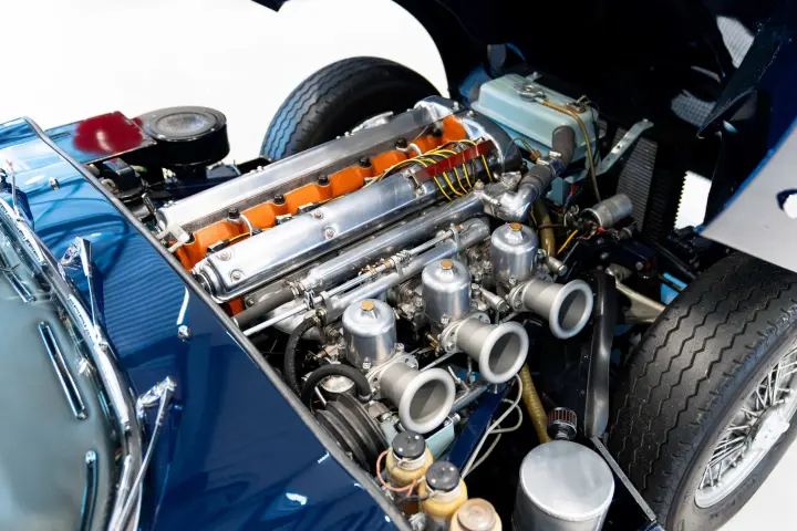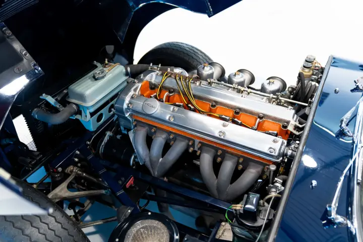 Between 2010-2012, a meticulous restoration by DK Engineering and E-Type UK brought the car back to its former glory. Staying true to the "Geneva Principle," which emphasizes preserving the authenticity of these early ZP E-Types, 850018 shines in its original Indigo Blue with a striking red leather interior. Its distinctive early features, unique to the seven ZP cars, have been carefully retained. The comprehensive history file accompanying the car is exceptional, documenting every owner, registration change, Jaguar factory records, and letters from key figures like Tommy Sopwith, Jack Sears, and Norman Dewis O.B.E., who confirmed the car’s ZP provenance. Dewis also shared insights about Jaguar’s requirement for ZP race teams to return engines to the factory for rebuilds.