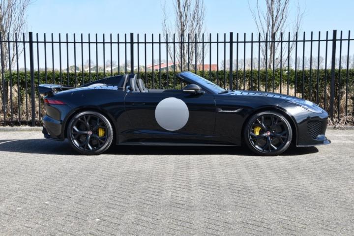 This is not just any F-Type! The original 5.0 liter V8 version already has a considerable amount of horsepower as standard, but in the Project 7 this was increased to 575 bhp. The roof was completely omitted and the windshield was lowered with 30 mm. Behind the driver, the distinctive “D-Type” hump was added and the front bumper, spoiler, diffuser and rims were modified. SVO developed a custom tuning for the 8-speed quickshift transmission and the electronic active diff, enabling acceleration from 0-60 mph in 3.9 seconds. The top speed is limited to 300 km/h . The aluminum body weighs 80 kg less than the standard F-Type and the tailgate, bonnet, louvres, power vents in the front wings and mirror caps are made of carbon.