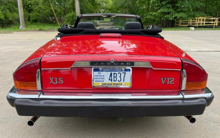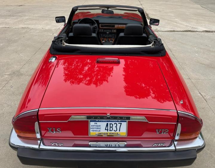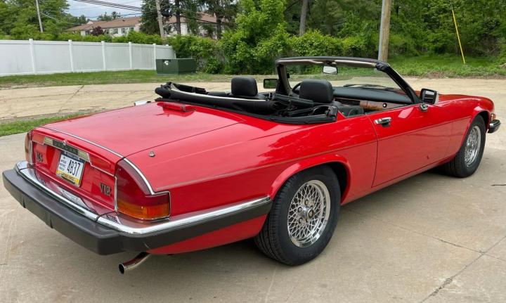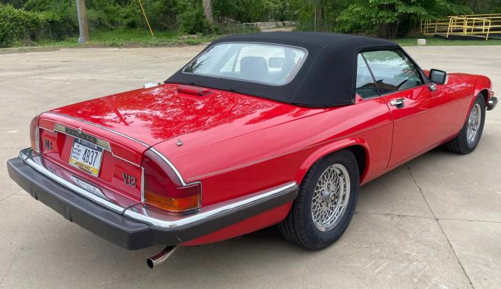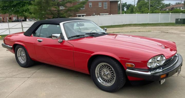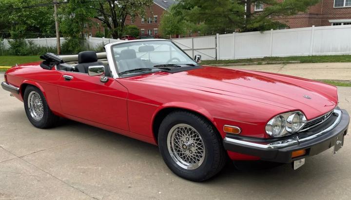 1990 Jaguar XJS V-12 Convertible, only 52,000 miles, rust free California car, stunning Signal Red paint, beautiful Black Hartz cloth top, excellent Black leather interior, smooth 5.3 liter 264 HP V-12 engine, automatic transmission, power steering, power brakes, A/C, power windows, power seat, and power top, over $10,000 recently spent on full servicing, runs and drives like new!
