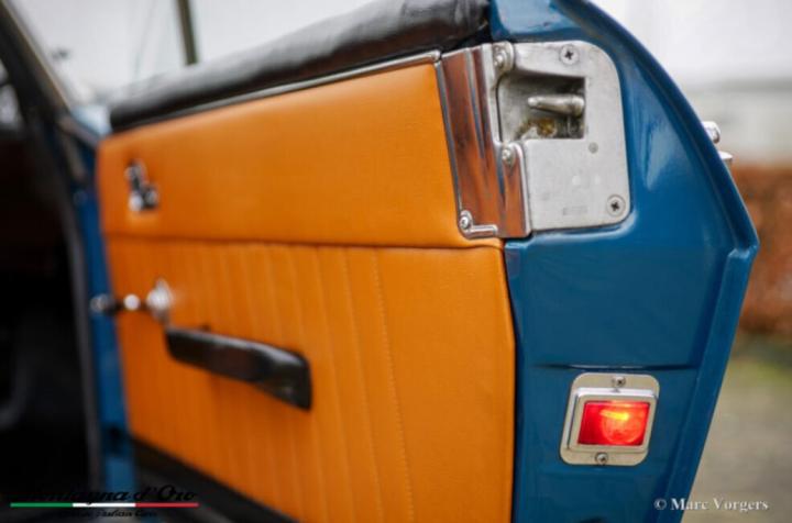 Bouwjaar 1967. eerste registratie 11 januari 1967. Chassisnummer 818.130.016.793, motornummer 818.100*2203520*. Kleur blauw Blu Mendoza”” gecombineerd met een cognacbruin kunstlederen interieur, zwart rubberen tapijt en een lichtbruine rubberen beschermmat.