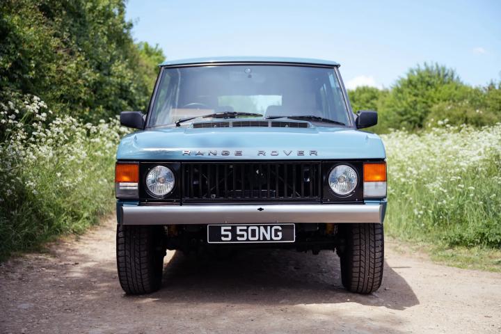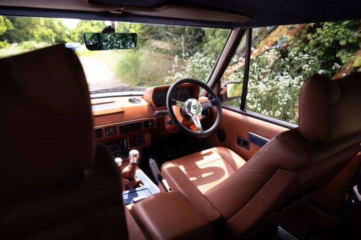 At first glance, this is a textbook early Range Rover—the model many regard as the purest expression of the original concept. The body has been backdated to replicate the look of a 1973 model, complete with original steel bumpers and the fabulous, purest profile.