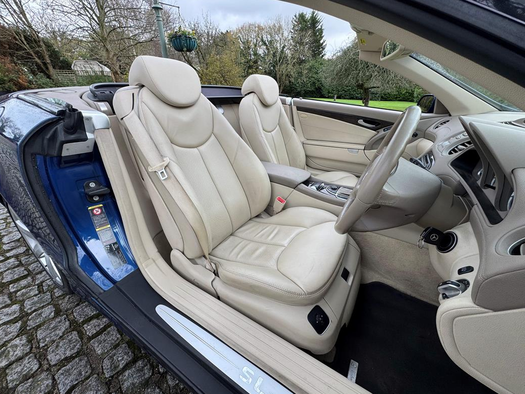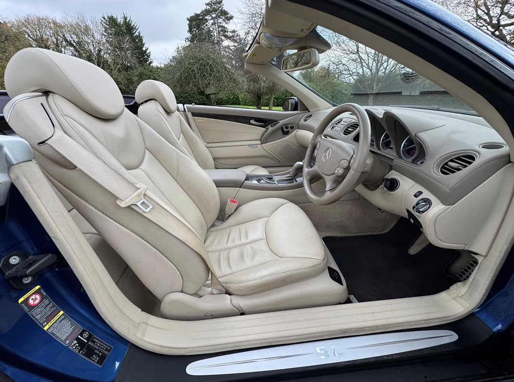 Just arrived with us as a part exchange against a more expensive Aston, this 2003 Mercedes 350SL has, by its condition, obviously been very well looked after by its previous owners. Finished in a fabulous shade of pale blue and complimented with a well kept cream hide interior, its condition is exceptional. Having only had 500 SL's in the past, I had always thought that the 350 SL would lack power, so I am very pleasantly surprised to be proved wrong.