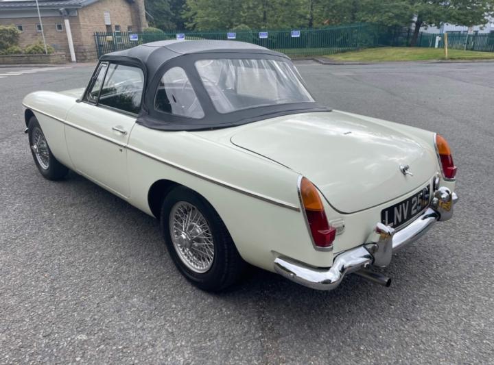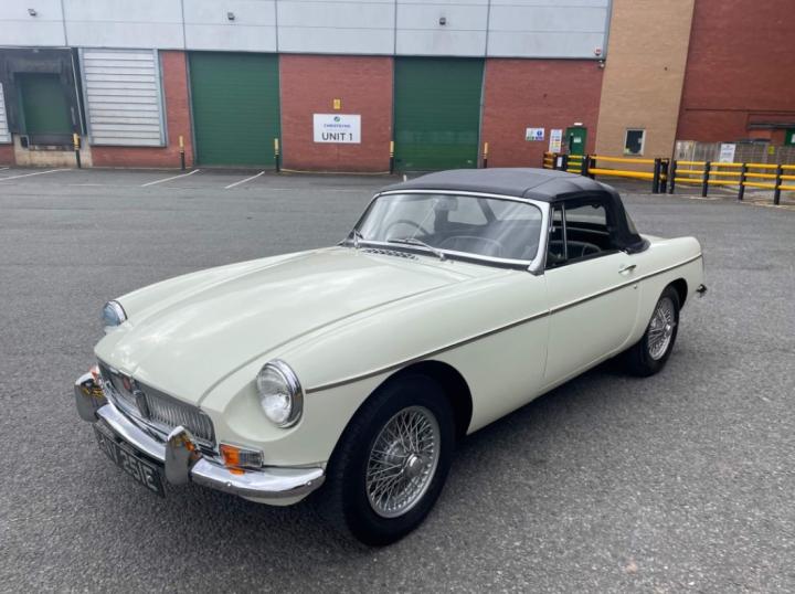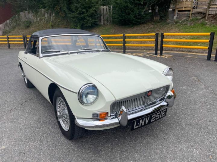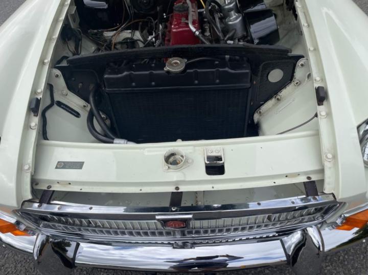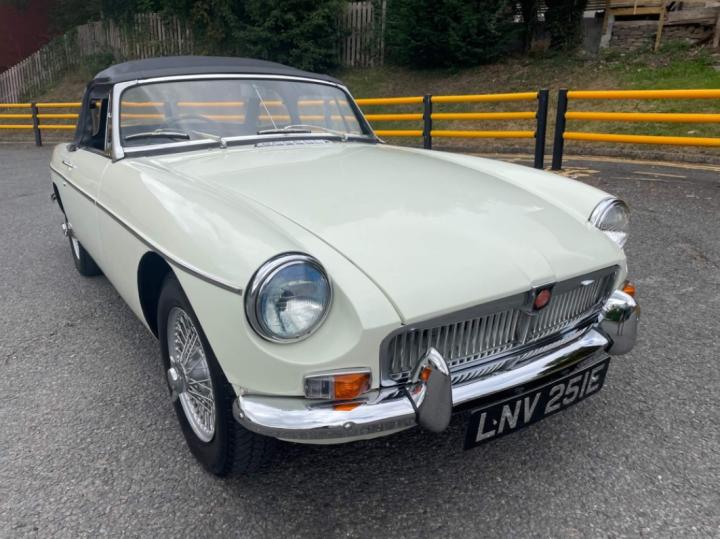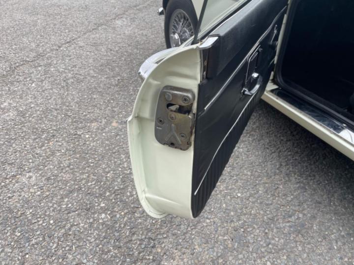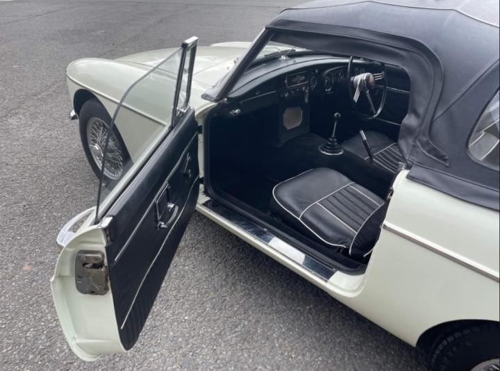 A matching-numbers, right-hand-drive example finished in OE White with black leather interior piped in white.