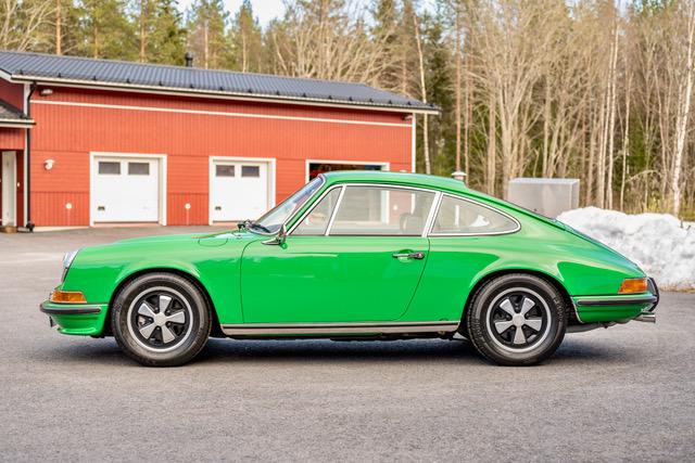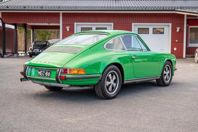Porsche 911 E was introduced first time for the 1969 model year with a two liter engine to be the model between the S and the basic T. The E came from the mechanical fuel injection which was in German language ”Einspritzung”. The second generation 2,2 liter E engine was produced in 1970-1971 and it gave 155 bhp. In total there were 1088 911 E Coupes build in model year 1971.