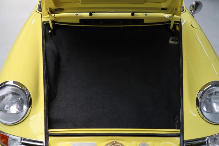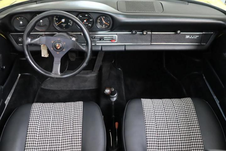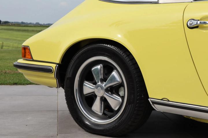 A sight to behold, as the beautiful paintwork of this 911 is barely dry and is finished in the colour “Light Yellow” (colour code 6262). The targa roof is the most sought-after version, thanks to the possibility of open-top driving without disturbing the car's beautiful roofline. Of course, the beautiful Fuchs rims are a must. This model still features the distinctive gold brand and type designation on the car. The windows are lightly tinted, which gives a more attractive look and reduces the amount of sunlight entering the car. Thanks to the restoration, the car is in very good visual condition. The paintwork, rubbers, windows, lighting and chromework are all in pristine condition.