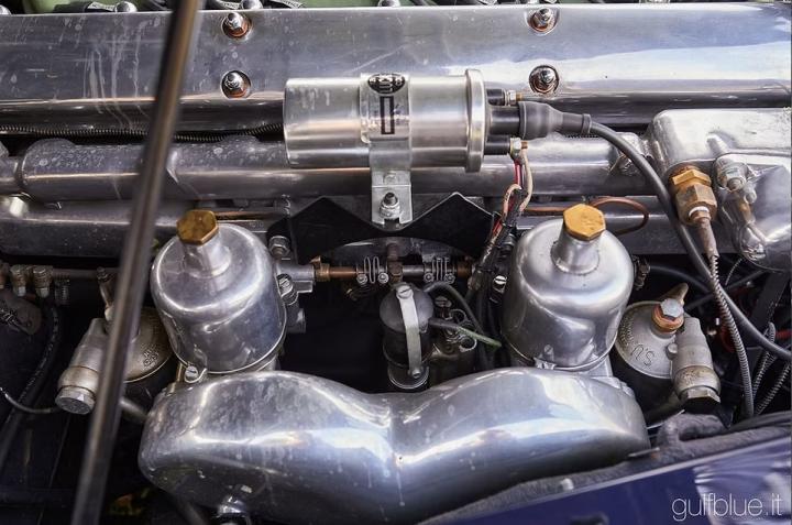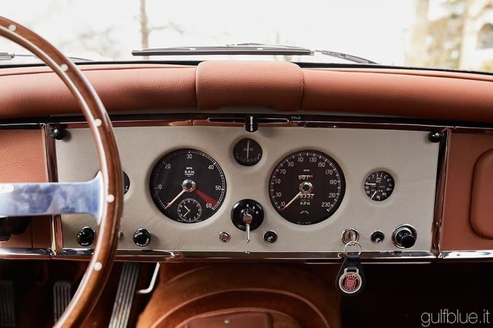 Originally black with a red interior, the car recieved a complete restoration about 6 years ago - accompanied by documentation and approximately 50,000 euros in invoices - in which the Indigo blue combination with tobacco leather interior was preferred to the original colours. After few kilometers from the end of the works, the car is in excellent condition, complete with all the correct details of the period; the overdrive – original equipment – improves the use of the Moss gearbox, the only Achilles heel of this car, as well as on the first Jaguar E-type, the model that replaced the XK150. Despite being over sixty years old, this car is still extremely pleasant to drive nowadays, relying on a brilliant engine and a powerful braking system: it is a perfect GT car that adapts to country roads as well as long motorway sections. Like all cars of the time, to be usable in today's traffic, it is fitted with an additional electric fan that helps maintain the correct operating temperatures.