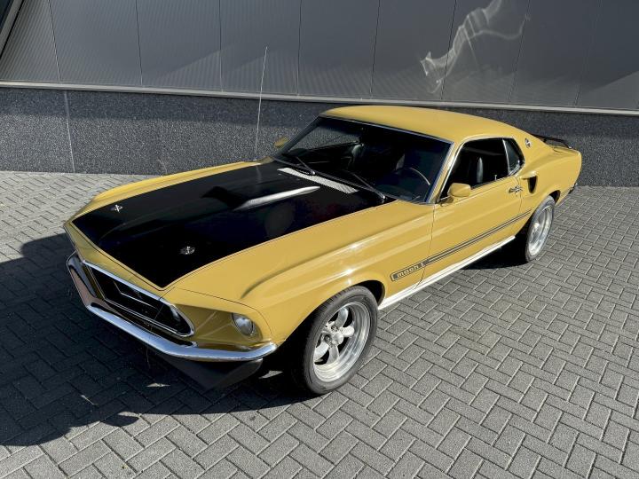 Loaded with a strong running 351w engine with aluminum heads , mild came ,aluminum intake manifold strong powerful engine the double exhausted gives it a nice deep rumble the fmx automatic shifts smooth in all gears loaded with disc brakes ,power steering ,deluxe mach one interior the mustang has be repainted 17 years ago in Europe and looks still very nice after a day polish its super shiny with a deep color, floors are original and clean this mustang has already an european license.