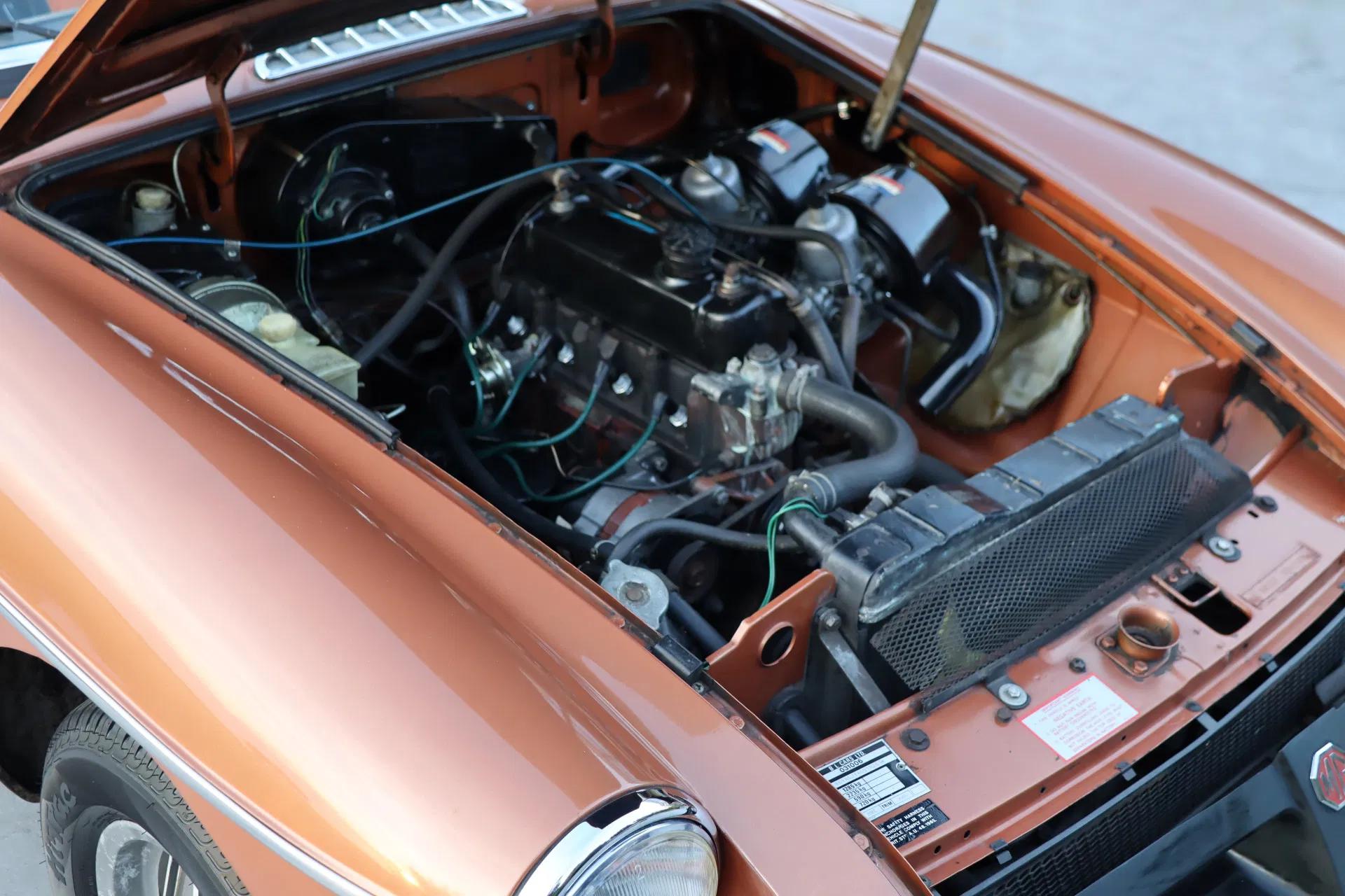 All 420 roadsters built were originally finished in bronze metallic paint with gold striping on the side and orange seat upholstery. A beautiful and retro colour combination. This example is free of damage and rust and is still in its original paint. The rubbers, lighting and chrome work are in good condition. The overall visual condition is good with only minimal signs of wear. Characteristic of the later B models are the front spoiler and the popular 4-spoke alloy wheels, which are also in good condition. The soft top is also in good condition with no tears or damage, and the fastenings work well.