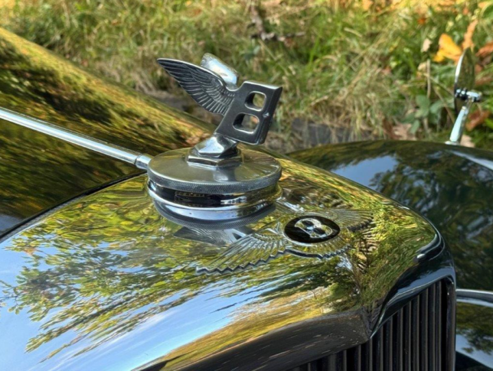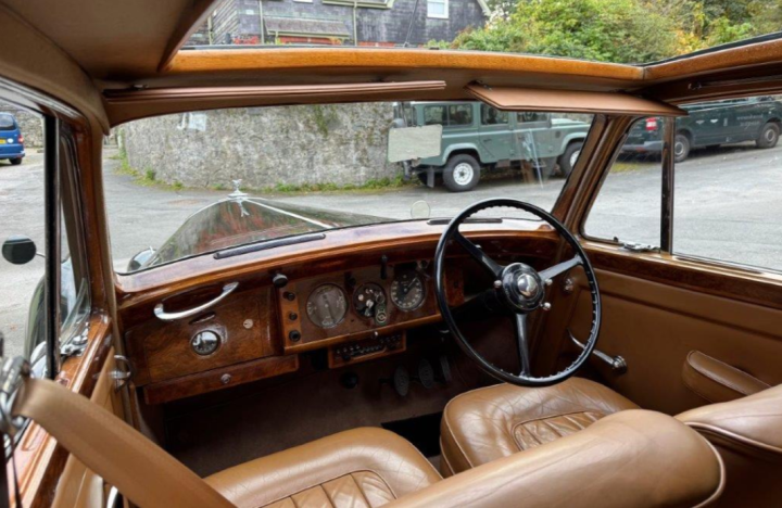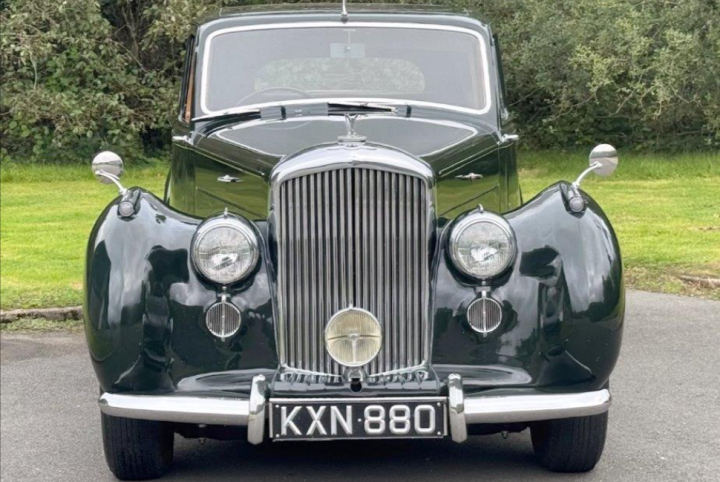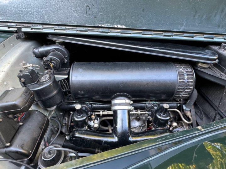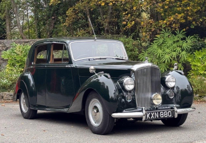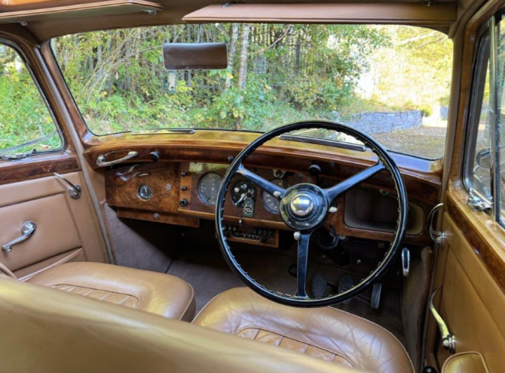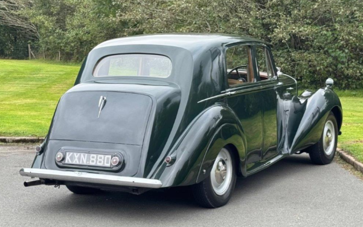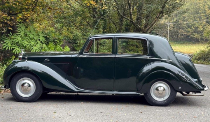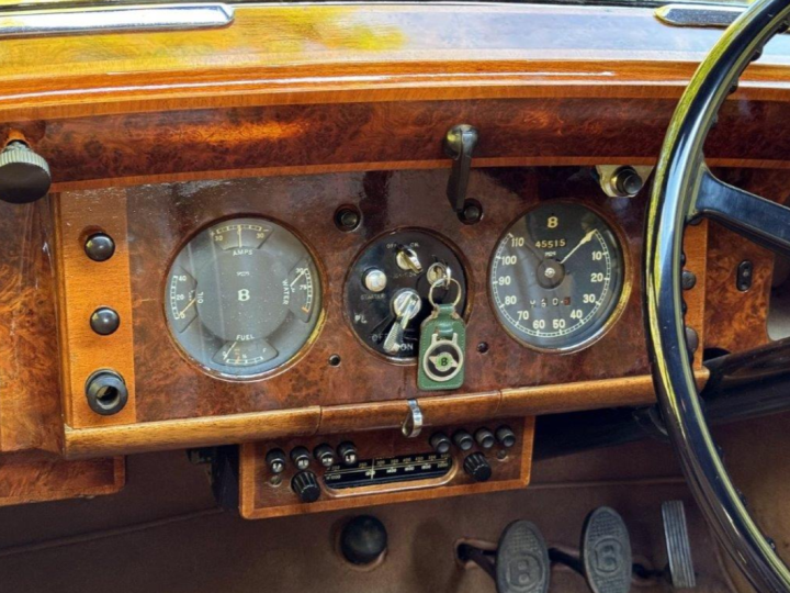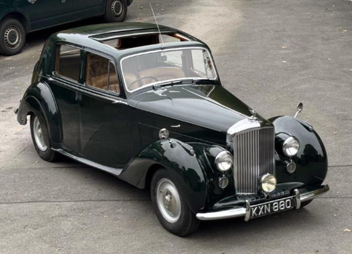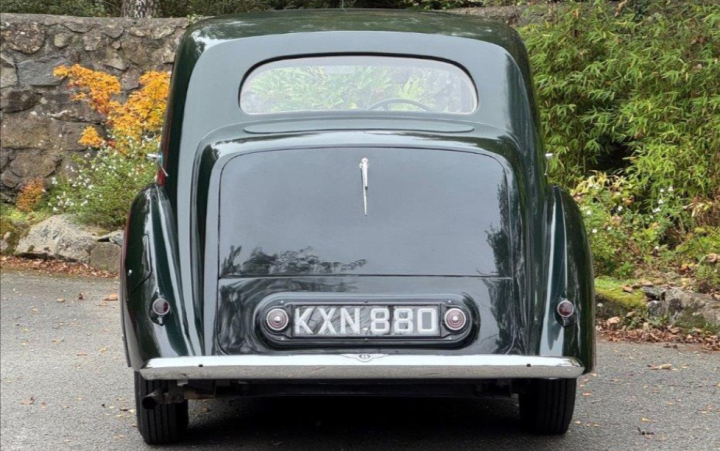 A smart and sound car, looking particularly attractive in very dark green with lovely tan leather interior, a colour scheme which we feel suits the car really well. The leather, carpets, headlining and woodwork are all fresh, correct and gorgeous. There are even colour-coded, inertia reel seatbelts, front and rear. Various correct tools, large and small, are included. The history file with the car confirms expenditure of about £53,000 on repairs and maintenance over the last couple of decades, all documented, several Jack Barclay invoices from the 1950s, and there is also written history from an earlier owner, MoT certificates, a buff logbook from 1960, and various other documentation, even including instructions for the HMV radio! As well as the original trafficator arms, still working properly, the car has been upgraded to flashing indicators, neatly incorporated into the existing side and tail lights, all working from the same switch. Driving nicely, performing well, and offered with a new set of radial tyres (not shown in the photos), serviced and MoT tested.