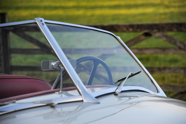 The minimal brightwork on this XK120 is in very good condition, as is the leather interior, which is nicely trimmed and shows minimal signs of wear.