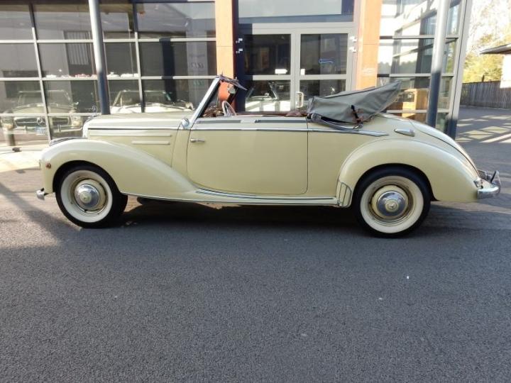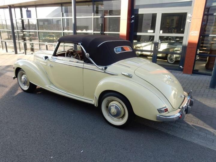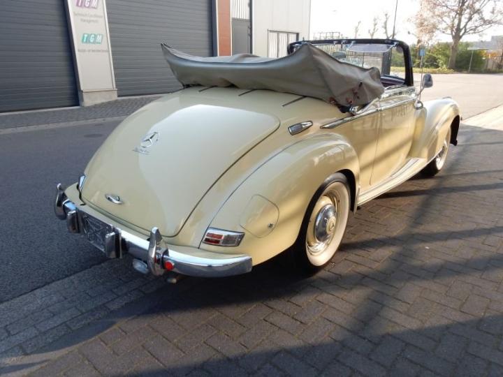 Betreft een vrij zeldzame Mercedes Benz 220A cabriolet uit 1953. Een auto die van origine in Californië USA is geweest en later naar Japan is gegaan. Onlangs is deze wonderschone qua vormgeving terug in Europa war ie ooit geproduceerd werd. De conditie is best goed, wellicht is het lakwerk niet perfect, maar de rest mag er wezen (zoals de body en het chassis). Het is een roestvrij exemplaar en tevens matching nummers. Voorzien van een mooi leder interieur en een sublieme soft-top. Het heeft schitterend wortelnoten houtwerk, het chroomwerk is zeer goed met een geweldige pasvorm. Motorisch en technisch in een goede staat en direct inzetbaar.