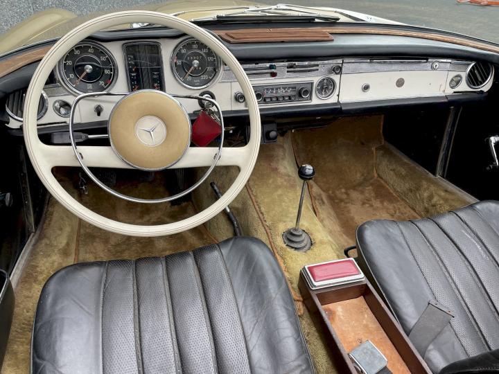 Leuke opknapper deze 230SL handgeschakeld en voorzien van Hardtop en softtop, na jarenlang stilgestaan te hebben in opslag hebben we deze auto weer tot leven gebracht, auto loopt en rijdt nu nadat het benzine systeem verbetert is en een nieuwe benzinetank met pomp en slangen vernieuwd zijn er voor ruwweg Euro 1.250 kosten aan gemaakt.