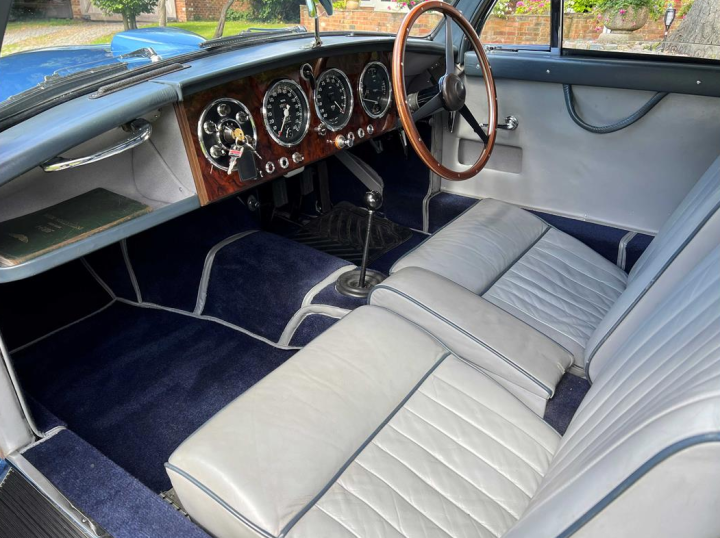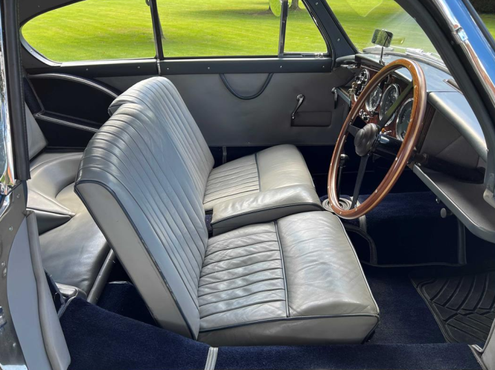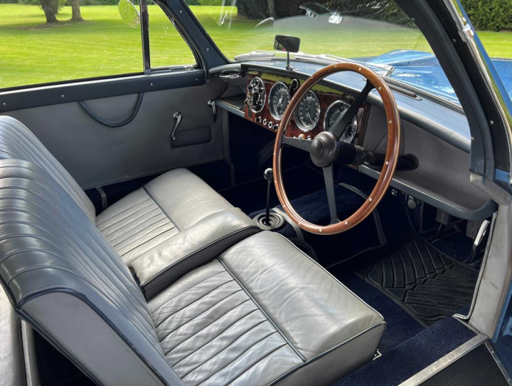 1955 Aston Martin DB2/4 finished in original Blue Haze with an exceptionally good interior, in pale grey hide with a recently re-veneered Walnut dash panel and best quality, dark blue Wilton carpet throughout, edged in blue leather and recently re-trimmed. It is one of the last of the original DB2/4’s to be produced, prior to the MkII arriving in late 1956 and hence has the benefit of the larger 2.9 engine which was then carried over to the MkII. Chassis No LML-881 comes with its original engine No VB6J-353 which according to the file was the subject of a complete rebuild as part of a £120,000 restoration carried out by “The Aston Workshop” prior to being sold to the last owner. Within the accompanying history file, are a good number of recent invoices amounting to over £18,000 on upgrades during the last 3 years. The car has had only 6 owners in 68 years and presents in superb condition and is a pleasure to drive.