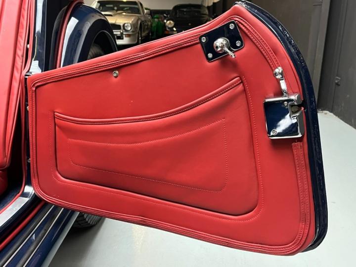 Visually, the car presents beautifully. It has been resprayed in a deep, classic dark blue, a colour that suits the TC’s lines perfectly and highlights its elegant proportions. This is complemented by a dark red interior, including seats, hood, tonneau cover and boot cover — a refined and period-correct colour combination that feels both sporting and understated.