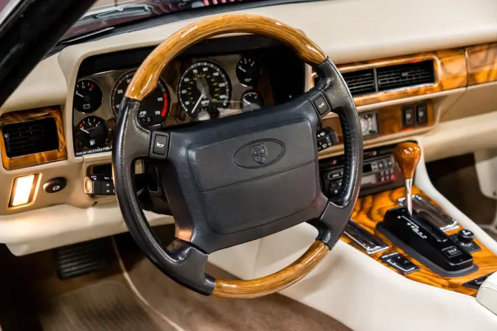 This outstanding example of a 16621-mile Celebration Edition 4.0 6 cyl XJS Convertible is PRETTIER in person than the pictures reflect. The paint is original and without flaw. This car has been garaged kept (obviously) and well preserved. Every component reflects that of a "new" car, crisp, sharp, and clean,as one would expect a garaged, kept 16621-mile car to be. The car has had annual services and has been periodically driven so it does everything correctly.