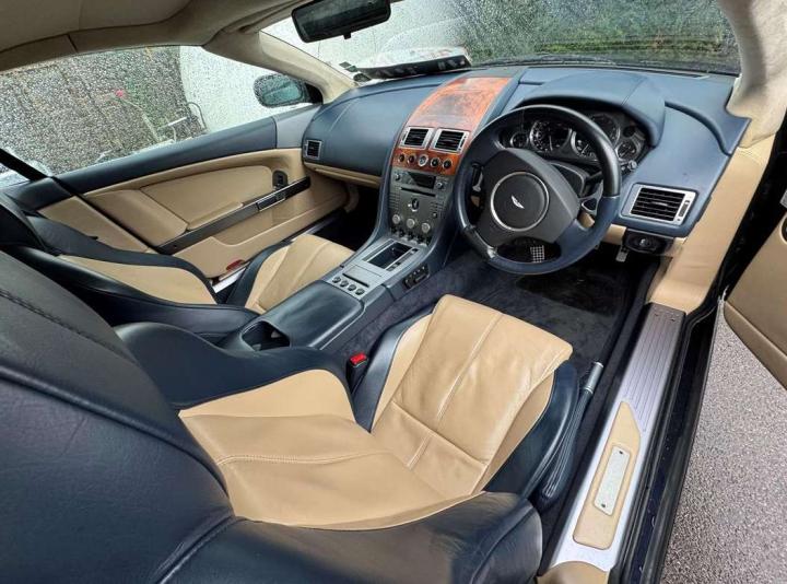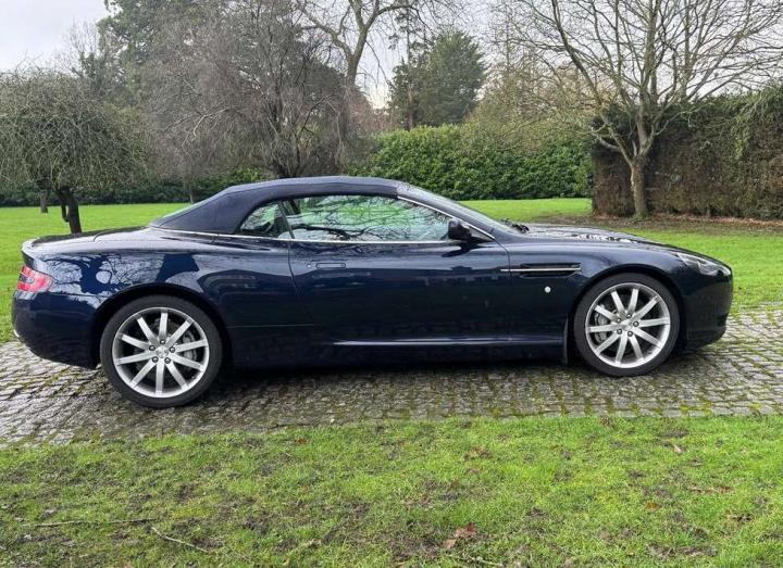2007 Aston Martin DB9 Volante finished in Oxford Blue with a beautiful and very rare two tone dark blue and light sand beige hide interior and a dark blue mohair soft top. This low mileage motor car has had just two owners from new, the most recent of whom has owned it since it was less than 2 years old. Always annually serviced at HWM Aston Martin in Walton on Thames with 18 service stamps in the service book. It also comes with a complete MOT history and has never failed a test. We believe that the specification includes every extra that was available at the time of purchase and it reads as follows. Climate Control, Satellite navigation and blue tooth connectivity, electric heated memory sports seats with lumbar support, fully adjustable steering column, high spec Hifi system with CD player, multi-spoke alloy wheels with pale grey callipers, traction control, cruise control, a fully retractable electric mohair soft top, a wind deflector and power fold heated mirrors. In the boot of the car is the original Aston Martin umbrella, the original battery conditioner together with the tyre pump. We cannot stress enough just how good this car is to drive, which we deduce is mainly due to the level of regular maintenance, despite there often being only minimal mileage covered between services. Cost new was in the region of £135,000 and hence now incredible value at only £34,950 More pictures to follow after the rain.