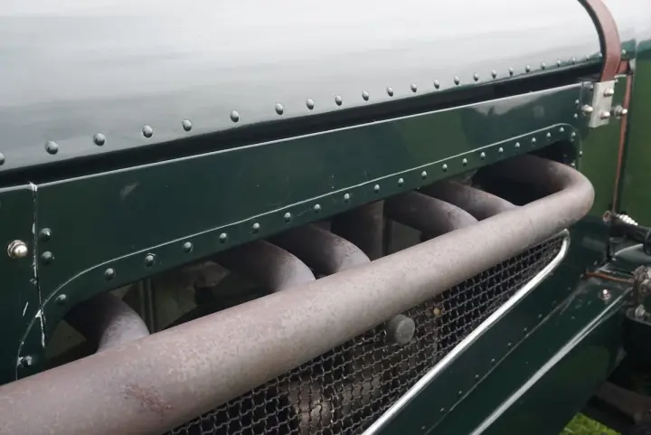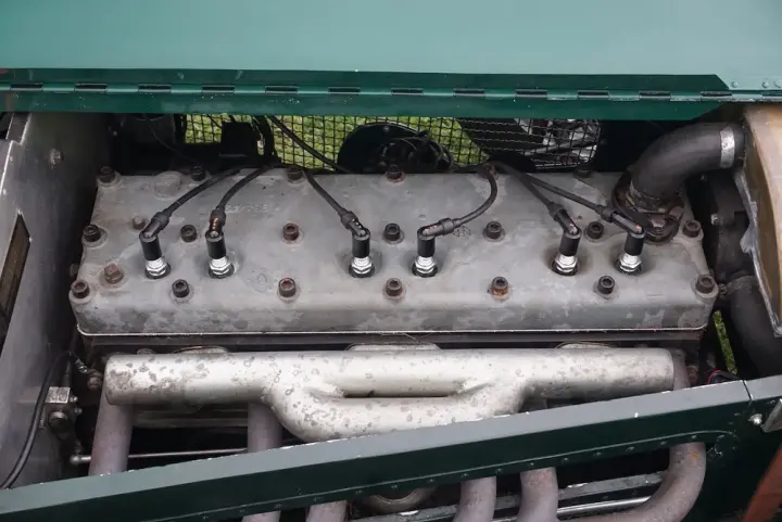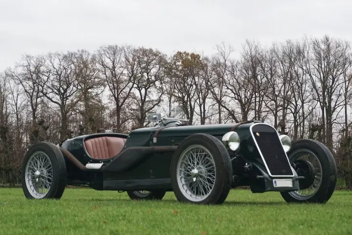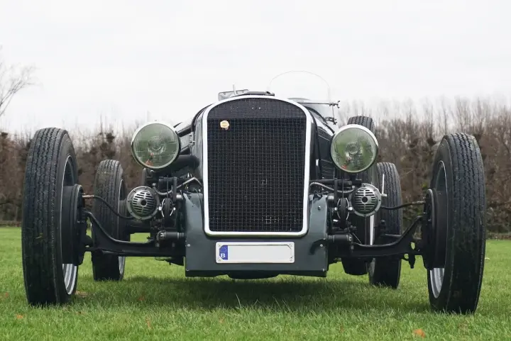 Magnifique Chrysler Roadster avec une finition verte et un intérieur beige. La carrosserie est entièrement en aluminium, ce qui rend la voiture très légère et agréable à conduire. Une combinaison parfaite d'un moteur puissant et d'un poids léger pour participer à des événements historiques.