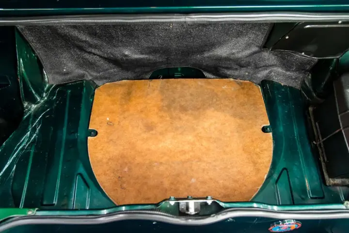 The car has correct wheels ,deep tread tires ,a good soft top, nice carpets, great paint ,straight dash with no cracks or warping ,good, well stuffed seats and straight center console.