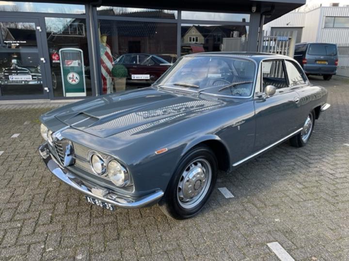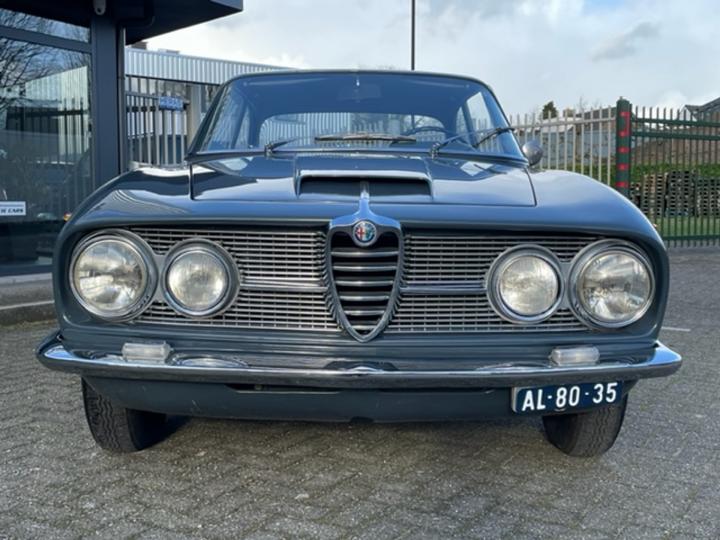 Prachtige Alfa 2600 Sprint uit 1966. Coachwork by Carrozzeria Bertone. Uitgevoerd in de prachtige kleur Grigio Grafite, gecombineerd met een donker blauw (origineel) leder interieur. Deze gave auto is nieuw verkocht in Italië, en later naar Nederland geïmporteerd. De Alfa is roestvrij en staat prachtig strak in de lak, en de 6 cilinder motor en versnellingsbak zijn gereviseerd (facturen aanwezig), en loopt als een zonnetje.