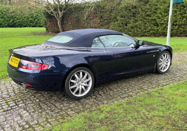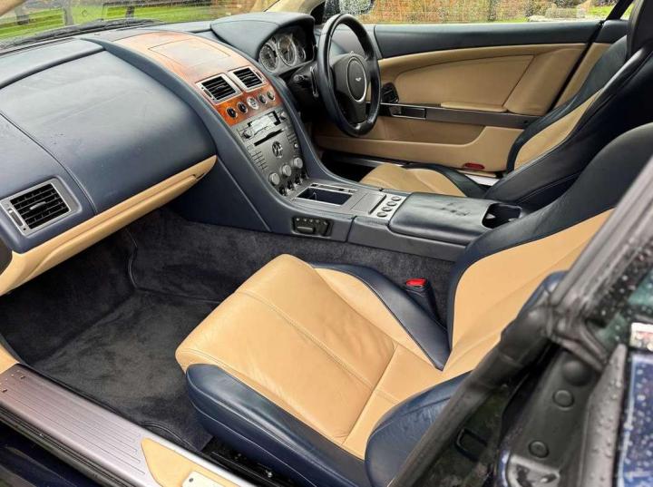 2007 Aston Martin DB9 Volante finished in Oxford Blue with a beautiful and very rare two tone dark blue and light sand beige hide interior and a dark blue mohair soft top. This low mileage motor car has had just two owners from new, the most recent of whom has owned it since it was less than 2 years old. Always annually serviced at HWM Aston Martin in Walton on Thames with 18 service stamps in the service book. It also comes with a complete MOT history and has never failed a test. We believe that the specification includes every extra that was available at the time of purchase and it reads as follows. Climate Control, Satellite navigation and blue tooth connectivity, electric heated memory sports seats with lumbar support, fully adjustable steering column, high spec Hifi system with CD player, multi-spoke alloy wheels with pale grey callipers, traction control, cruise control, a fully retractable electric mohair soft top, a wind deflector and power fold heated mirrors. In the boot of the car is the original Aston Martin umbrella, the original battery conditioner together with the tyre pump. We cannot stress enough just how good this car is to drive, which we deduce is mainly due to the level of regular maintenance, despite there often being only minimal mileage covered between services. Cost new was in the region of £135,000 and hence now incredible value at only £34,950 More pictures to follow after the rain.