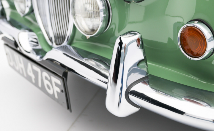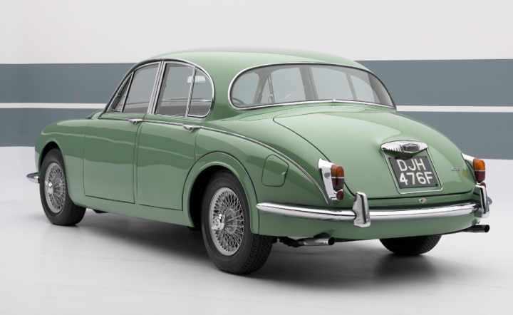 Bellissima Daimler 250 V8 con cambio automatico, immatricolata in Inghilterra nel 1968, immatricolata in Italia nel 2011, guida a destra, colore verde Irlanda, interni in pelle verde, meccanica in ottimo stato.