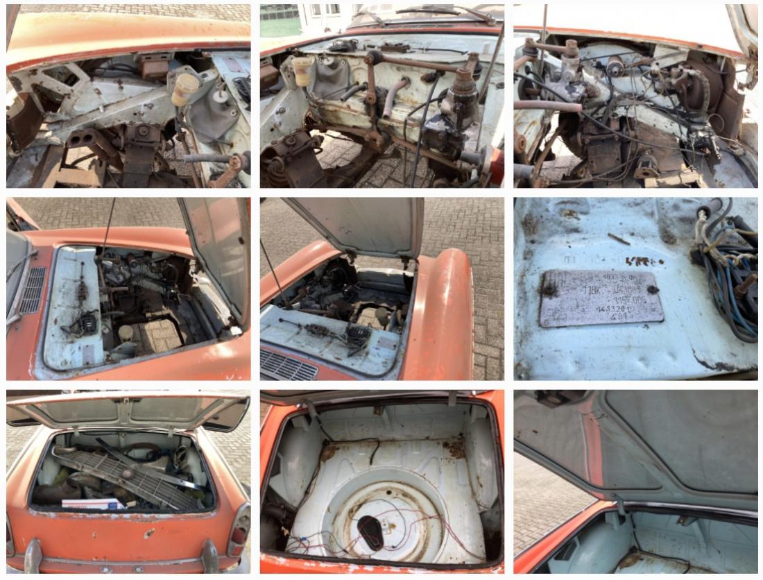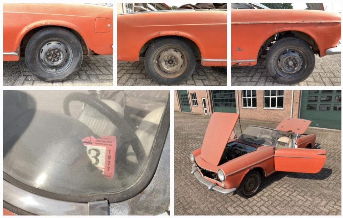 Originally delivered in light blue, with a light beige interior, the car was painted orange in the past. Some light nose panel damage, which will be easy to fix.