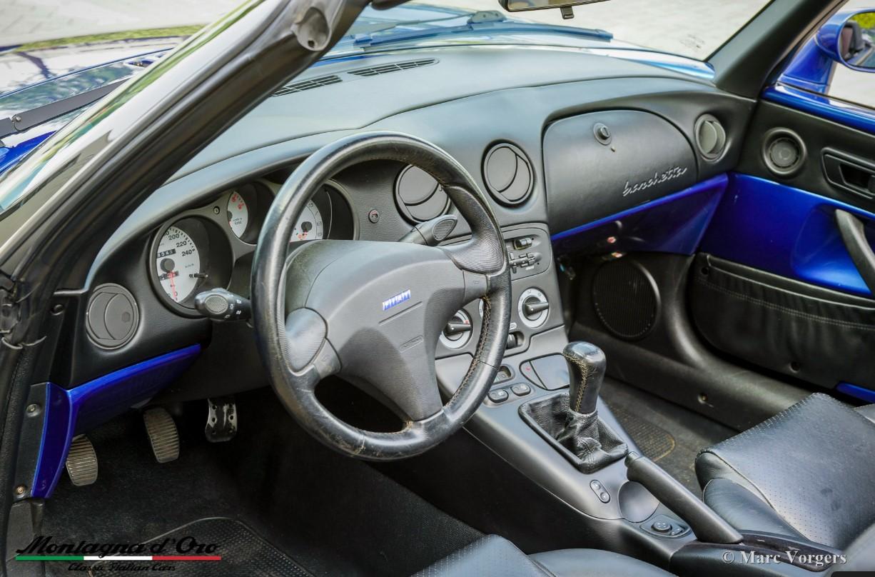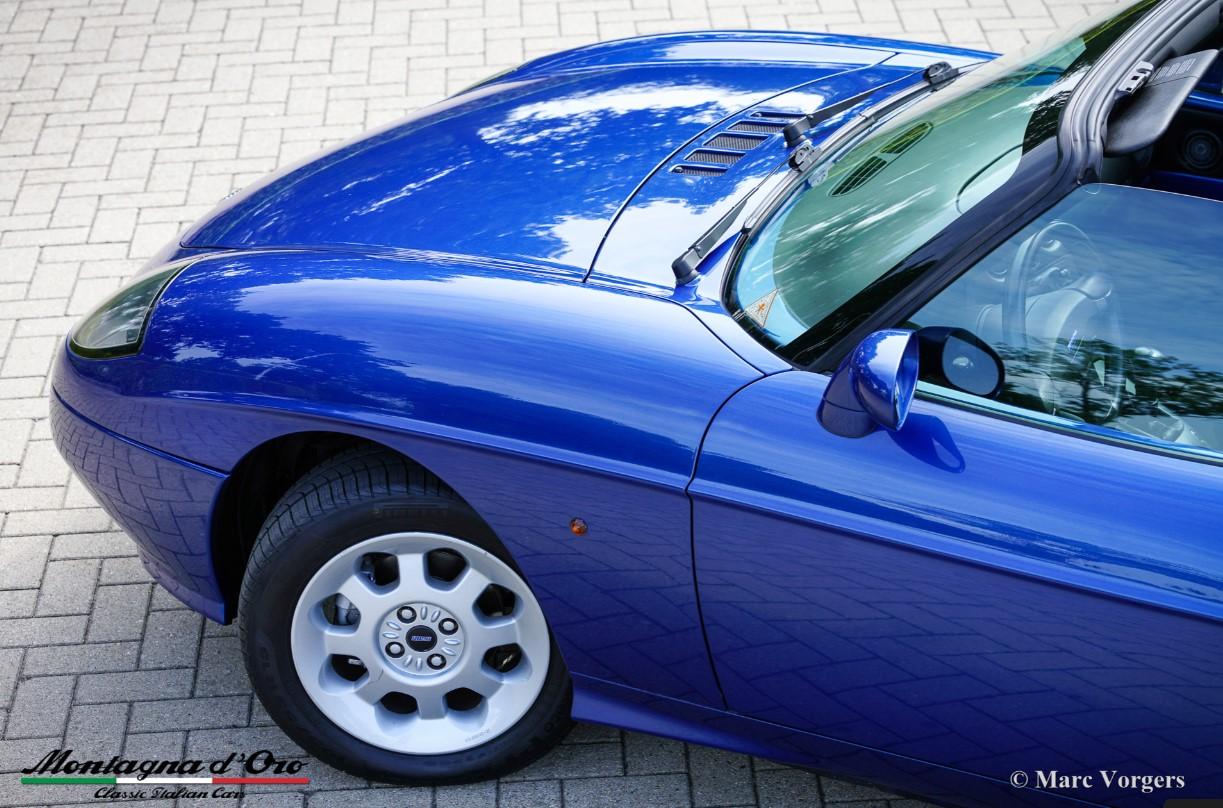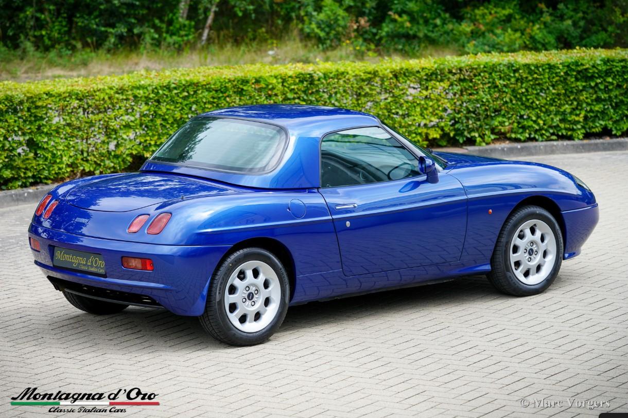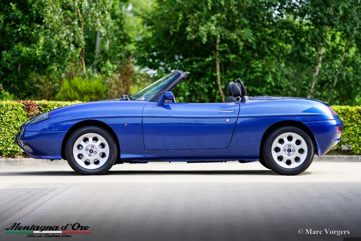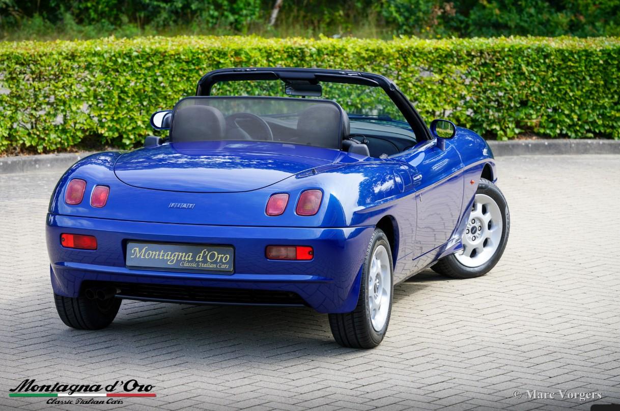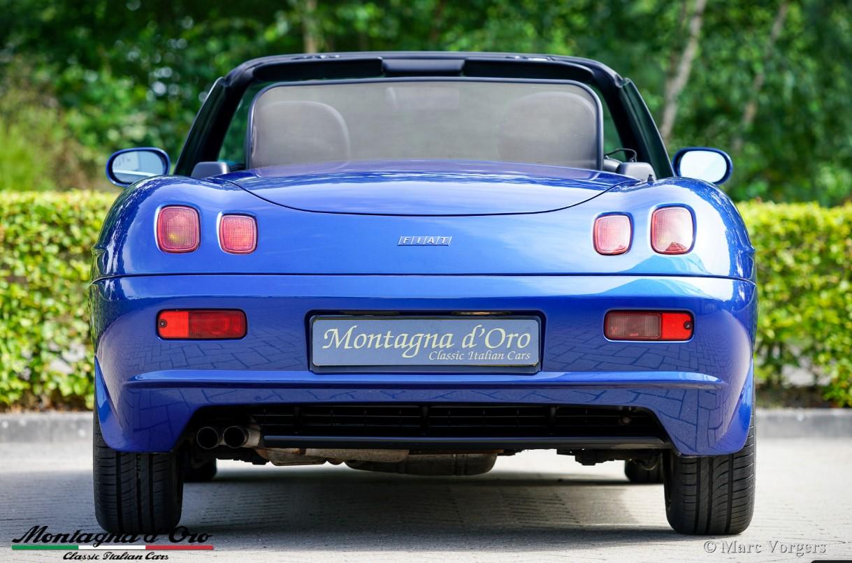 Deze Barchetta is voorzien van lederen bekleding, een lederen stuurwiel en een lederen versnellingspook, elektrische ramen en spiegels, geïntegreerde mistlampen voor en achter, een Fiat audiosysteem, een windstopscherm en speciale originele Fiat lichtmetalen velgen.