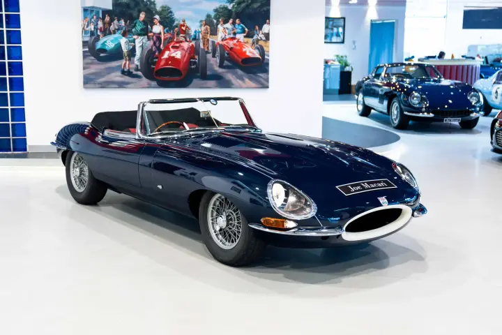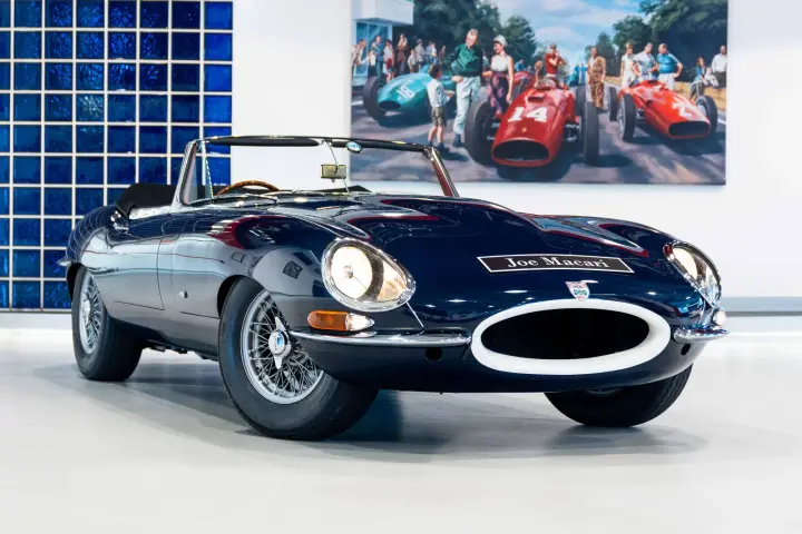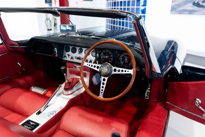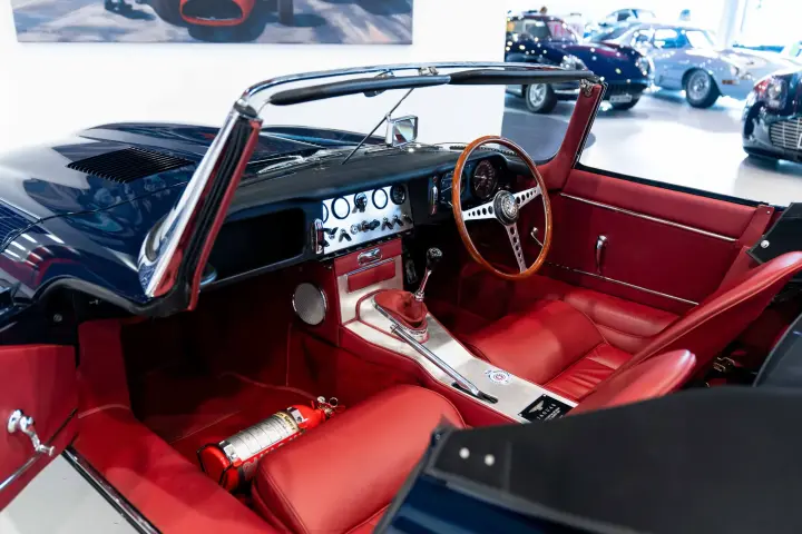 Between 2010-2012, a meticulous restoration by DK Engineering and E-Type UK brought the car back to its former glory. Staying true to the "Geneva Principle," which emphasizes preserving the authenticity of these early ZP E-Types, 850018 shines in its original Indigo Blue with a striking red leather interior. Its distinctive early features, unique to the seven ZP cars, have been carefully retained. The comprehensive history file accompanying the car is exceptional, documenting every owner, registration change, Jaguar factory records, and letters from key figures like Tommy Sopwith, Jack Sears, and Norman Dewis O.B.E., who confirmed the car’s ZP provenance. Dewis also shared insights about Jaguar’s requirement for ZP race teams to return engines to the factory for rebuilds.