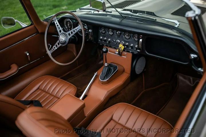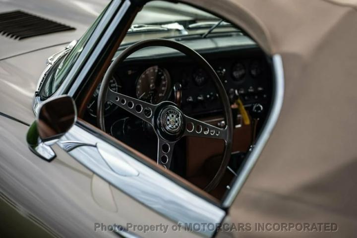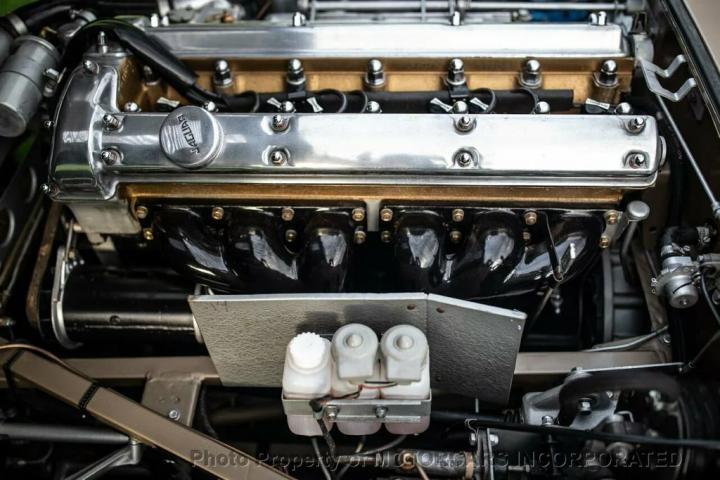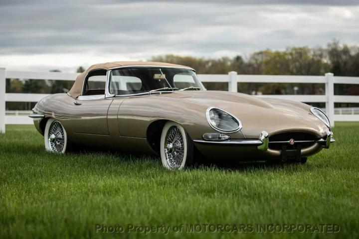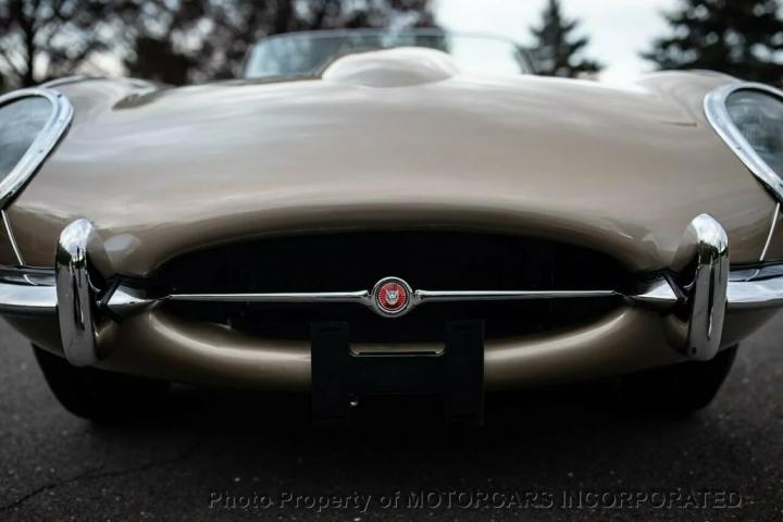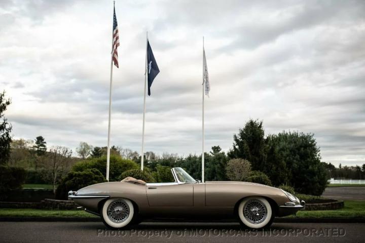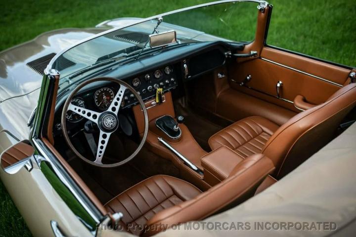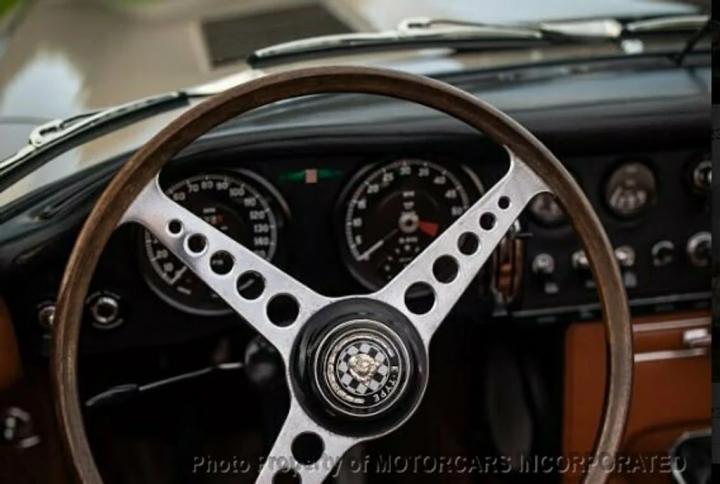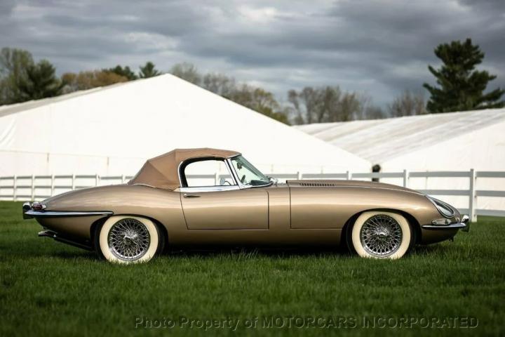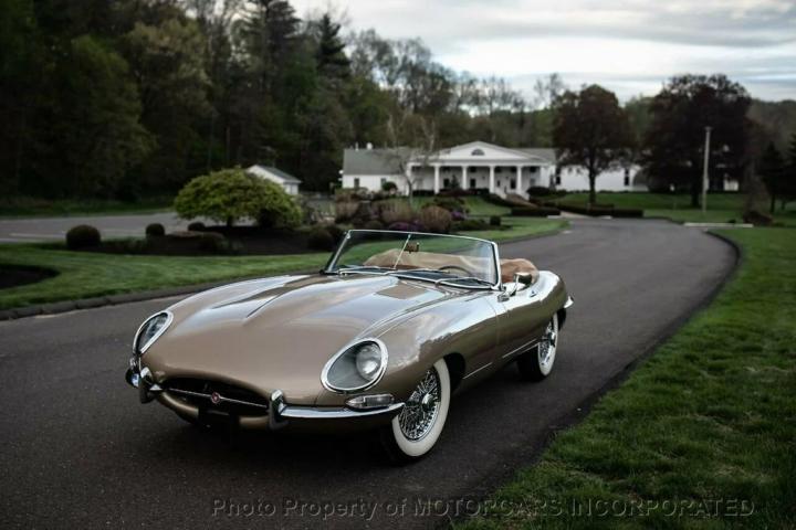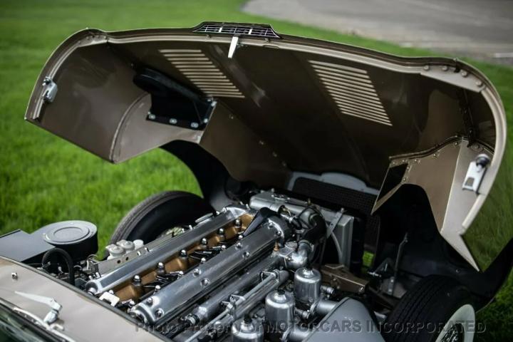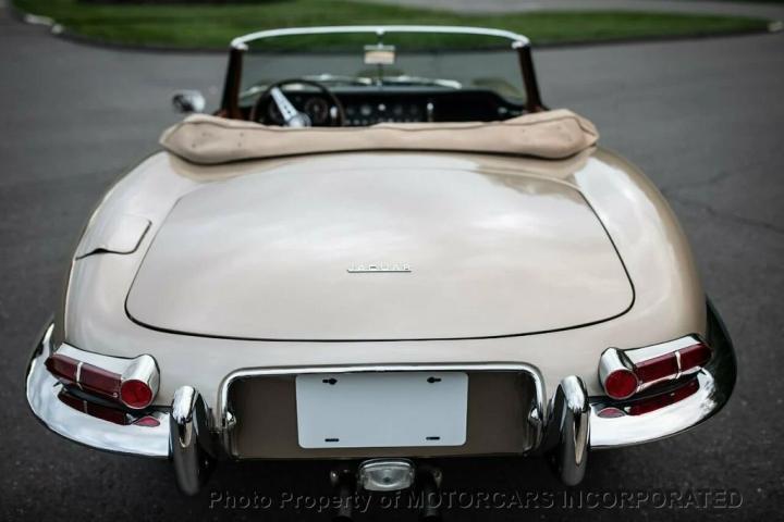 This 1964 Series 1 E-Type OTS in finished in a Special Order Color of "Opalescent Golden Sand". Our shop calls this car Sandy. Chassis #881468 this car was Manufactured in April 1964 and was delivered to New York N.Y. to her first owner in late June 1964. This car remained in an original and very kept state for over 35 years. Then changed hands and moved to Massachusetts where it stayed up to 2016 where it was finally restored to its present condition by us here at Motorcars Incorporated. This car always was a driver and never was out of service. The car was painstakingly restored with only one thing in mind and that was to try to create a car that doesn't appear overdone. All the finishes, preparations and materials were used to appear totally as it was built. The entire motor was completely rebuilt and balanced, all new bearings, a complete refurbishment of the cylinder head, a new clutch and a Synchronized Series 1 1966 Transmission was installed. The car also comes with the working order Original Moss Gearbox which is detailed and comes with the Sale of the car. See pictures of the Transmission and cover all matching numbers. The car was built very carefully because we realized that this car not only is a Matching number car totally, but it has matching build plates and markings on the wiper motor, the water pump and other components to prove authenticity. The pictures show the body tag, the front engine frame number and the head and engine block number also matching the Never Removed from the car Commission Plate. The car comes with the original, never painted.. Hard Top. The Top in very good condition in all aspects but the rear chrome around the Persplex window is not installed because it has to be straightened slightly. This car has the original tool kit that is pictured and complete and the original jack as well. This car was delivered from the dealer with a new set of seats in it that are a late 64 or 65 model. The car also comes with a set of unrestored 3.8 Seats but they are not upholstered. The interior was completely stripped and professionally done in our restoration shop when the car was done. All components, the generator, regulator and original fan motor were rebuilt and they all work as they were new. All gauges and functions of the car all work as they should. This car checks all the boxes.. it has a Special Order Color, it is totally sorted out and reconstructed, it has Show winning quality paint and all the chrome is in show condition. It still has the Original dash cover and we decided to leave it original as it is near perfect. Note in the pictures that this car has the original and near perfect front headlight Triplex lenses, it has a Triplex original Windscreen, it has a Bas Ltd Perfect Custom proper made top. All original Cheney Clamps and hardware were re-plated and reused on this car. Close attention to detail of originality was done in the restoration. The car had all new wheels and Coker Wide White tires mounted, all 5 when the car was restored as well as all new caliper restoration and all new hoses, fluids, lines and all the hardware was checked and replaced as needed. The car being a mid to late 64 car should not have wide walls on it but they look so nice we wanted to put them on. Sandy won her class at the Art in Motion show in Monticello New York in 2018 Sandy won her class at the Lime Rock Historic Concour d'elegance in 2018 Sandy won her class in 2 of 2 Jaguar Club of North America Concours d'elegance She has also won many other car shows all around the New England area as well as been Driven in many cause related functions and rally's. The car is supplied with the original Hood Envelope, it comes with the bound copy of all documented pictures, the car comes with the Heritage Certificate and copies of the Title that we have and whatever pertinent paperwork we have will go with the Sale of the car. Including the Original transmission, the Original Hard Top along with the Chrome that we have to go with it.