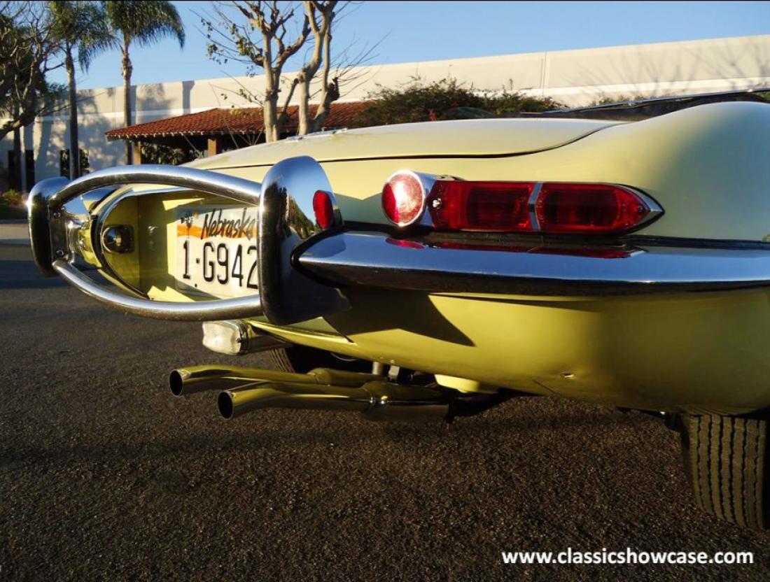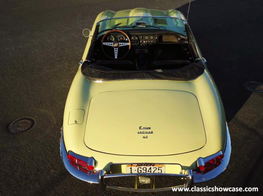 The Series 1 4.2 liter Jaguar E-type is the most desirable of all the series with a fully synchronized 4 speed transmission, covered headlights, toggle switches on the dash, comfortable bucket seats, center console, and arm rest. This makes the best driver and the most collectible for an investment.