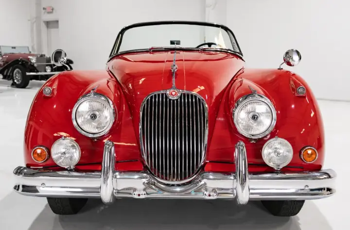 The magnificent 1959 Jaguar XK150 Roadster featured here is finished in classic Carmine Red over a Black leather interior with a matching folding convertible top. This spectacular motorcar was just released from a world-class collection and is now ready for its next caretaker. This investment-grade XK150 was subject to a thorough restoration and is now ready to be shown or driven. We are proud to offer what we believe to be an exceptional investments in the motoring world; I personally feel these sculpted works-of-art are severely undervalued. We offer this Jaguar XK150 to the most sophisticated collector, investor, or enthusiast who understands and appreciates the investment potential of this iconic motorcar!