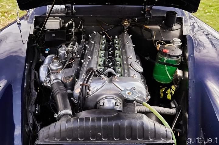 Originally black with a red interior, the car recieved a complete restoration about 6 years ago - accompanied by documentation and approximately 50,000 euros in invoices - in which the Indigo blue combination with tobacco leather interior was preferred to the original colours. After few kilometers from the end of the works, the car is in excellent condition, complete with all the correct details of the period; the overdrive – original equipment – improves the use of the Moss gearbox, the only Achilles heel of this car, as well as on the first Jaguar E-type, the model that replaced the XK150. Despite being over sixty years old, this car is still extremely pleasant to drive nowadays, relying on a brilliant engine and a powerful braking system: it is a perfect GT car that adapts to country roads as well as long motorway sections. Like all cars of the time, to be usable in today's traffic, it is fitted with an additional electric fan that helps maintain the correct operating temperatures.