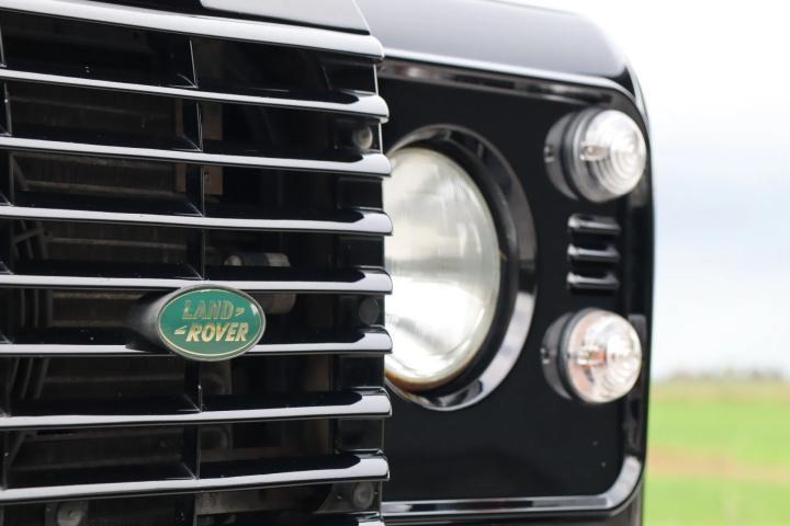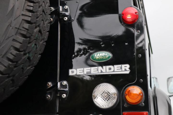 Een prachtige en stoere verschijning is deze Defender, uitgevoerd in volledig zwart. De diepzwarte kleur heeft een prachtige glans en de optische staat is zeer goed met slechts minimale gebruikerssporen. De 15-inch lichtmetalen velgen verkeren in topstaat. Treeplanken aan de zijkanten geven de auto een extra robuuste look. Aan de achterzijde bevinden zich een opstap voor de passagiers achterin, een trekhaak en een reservewiel. De verlichting en rubbers verkeren in een frisse staat.
