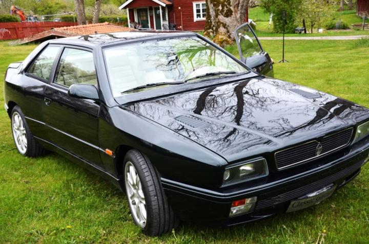 UTRUSTNING: ACC, 6-växlad Getrag, Elhissar, Skinnklädsel, Elspeglar, Alpine CD-stereo, C-lås, 17" Maserati fälgar m nya Dunlop däck -22, GT-modell med Ställbara stötdämpare och Ferrari 456 bakaxel/diff, Full servicedokumentation samt servicebok,