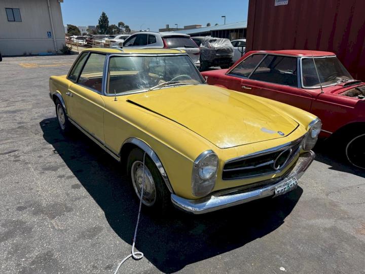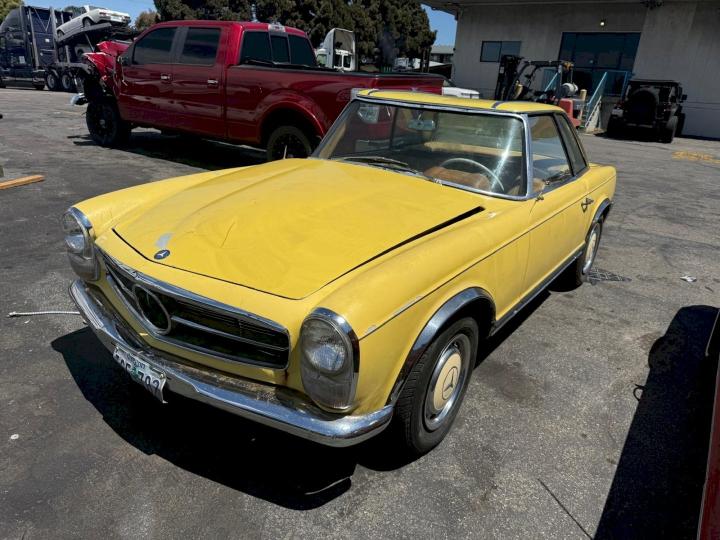 1965 Mercedes Benz 230SL geel (ex Donkerblauw 332)