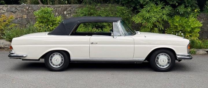 A lovely example of a very rare, 3.5 litre V8. As we understand it, only 68 were built in right-hand drive, and consequently very hard to find! The car is very nicely finished in soft white with original black leather interior and black hood, and is in lovely condition. The car has been with one family (father and daughter) since 1978, and quite possibly since new. We are investigating this further. Well maintained, with a good deal of history in the file, including many invoices, a run of MoT certificates, original handbook and service book, etc, etc. In the late 1980s, the car was stripped to bare metal and completely repainted to a high standard in the original shade of white, and still lovely to this day. Offered serviced and MoT tested.