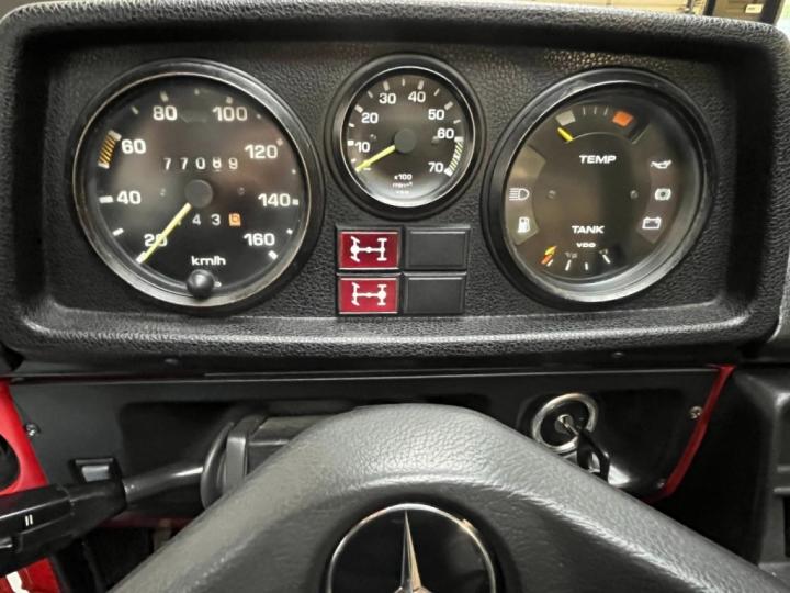 The G230 was an important milestone in the development of the G-Class. It was the first petrol-powered version, equipped with the smooth 2.3-liter four-cylinder producing 90 hp. Before this model arrived, all G-Wagons were diesel, so the petrol engine offered a more refined driving experience without compromising capability. The 1981 model year also brought an improved dashboard layout and power steering, making everyday use more comfortable than one would expect from an early off-roader.