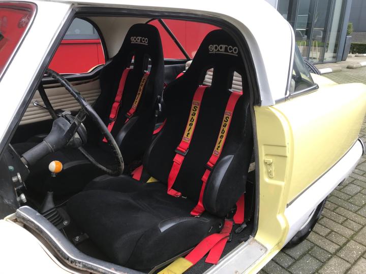 In het interieur staan nu 2 zwarte sportstoelen maar de originele bank is er nog bij.