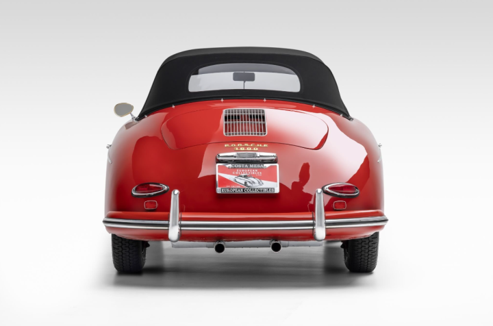 This 1957 Porsche 356A Speedster was completed on April 5, 1957. It was originally fitted with engine number 65073 and transmission number 13944, both matching numbers that remain in the Speedster today. It is a US example imported by Hoffman Motor Company in New York with sealed beam headlights and USA bumpers. It was originally finished with a white exterior and a red interior.