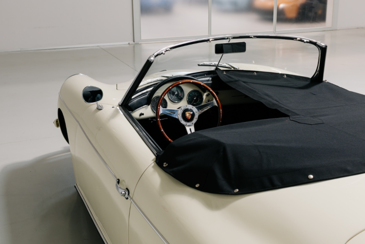 The 356 Roadster was conceived as the successor of the Speedster. The main differences with the more common, less rare, Cabriolet 356 B variant were the removable windshield frame, the Speedster-like minimalist dashboard, the lighter and less bulky soft-top frame, the Roadster offered a purer, sport-oriented character than the contemporary Cabriolet. Produced between 1959 and 1961 and with a total run of 2.653 examples, the Roadster is revered as one of the most interesting 356 models, specially in its “Super 90” variant.