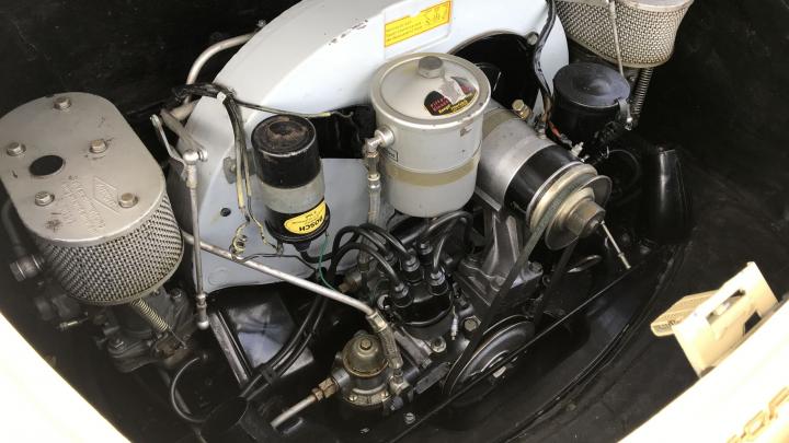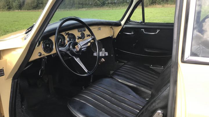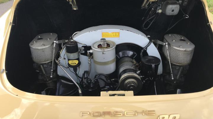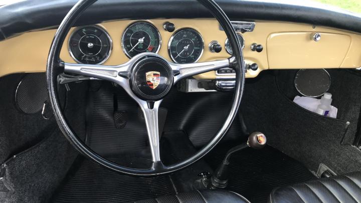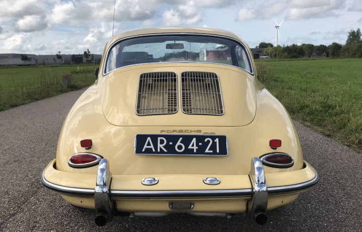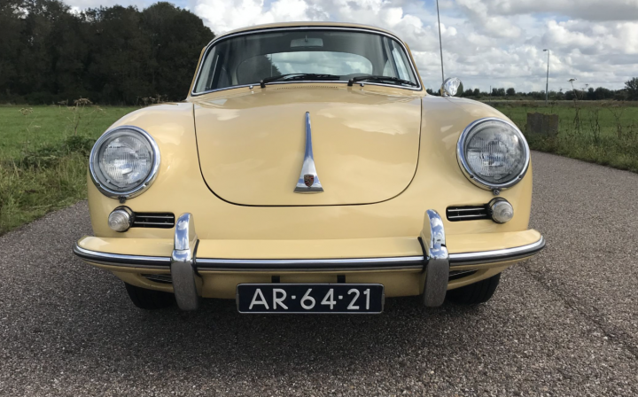This very beautiful 356B T6 S90 (Super 90) was supplied new in April 1963. The first owner was an American Air Force officer stationed at the Ramstein Airforce Base in Germany. He had his new car delivered to Germany where he used the car until his service time was up. The owner and his car then moved to America, where the owner retained his 356 until his death. Then the car came into the hands of his daughter. She decided to sell the car as she wasn’t really very interested. We bought the car in 2013 and sold it to a Dutch automobile aficionado, who, however, drove the car sporadically. This 356 S90 is still in an excellent and rust-free state. The body was repainted once, in the 1990s, and of course it was repainted in the original colour, Champagne Yellow 6205B. In 1986, the engine was replaced by a KD engine. The code KD stands for Kunden Dienst. Engines with this code are engines that have been overhauled at the Porsche factory and so, this engine is the correct one for this 356B T6. At the request of the owner, the odometer was reset to zero after the new engine had been installed. This has been duly documented and the evidence is part of a large amount of old invoices. The car has since driven some 11,000 mls. only.