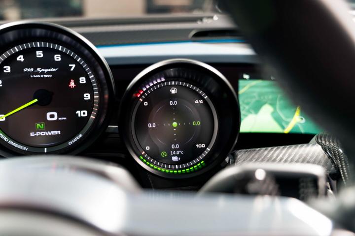 What truly sets the 918 apart is how it harnesses this immense power through a visionary hybrid system that was decades ahead of its time. This isn't merely about performance—though it conquers the Nürburgring in under 7 minutes—but also about remarkable efficiency that exempts it from UK road tax. With approximately 18 miles of pure electric range, it offers something no other hypercar of its era could: environmental consciousness paired with blistering performance and with top-mounted exhausts positioned just behind the driver's head, The drama continues, delivering a soundtrack that matches the car's visceral performance. The removable two-piece roof stows elegantly in the front storage compartment, which is naturally finished in gloss carbon fibre. The central touchscreen infotainment system houses over 800 different functions, yet remains remarkably intuitive—a testament to Porsche's dedication to usability alongside innovation.