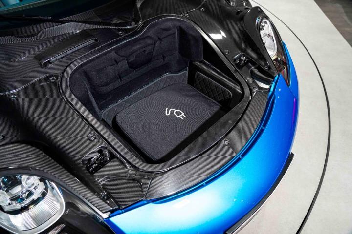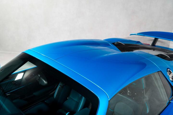 This extraordinary paint adorns the carbon fibre chassis and is further protected by a full coverage Paint Protection Film. Complementing this unique exterior are gloss silver Magnesium Wheels (a €25,000 option) that perfectly balance the striking blue bodywork, enhanced by beautiful silver calipers.