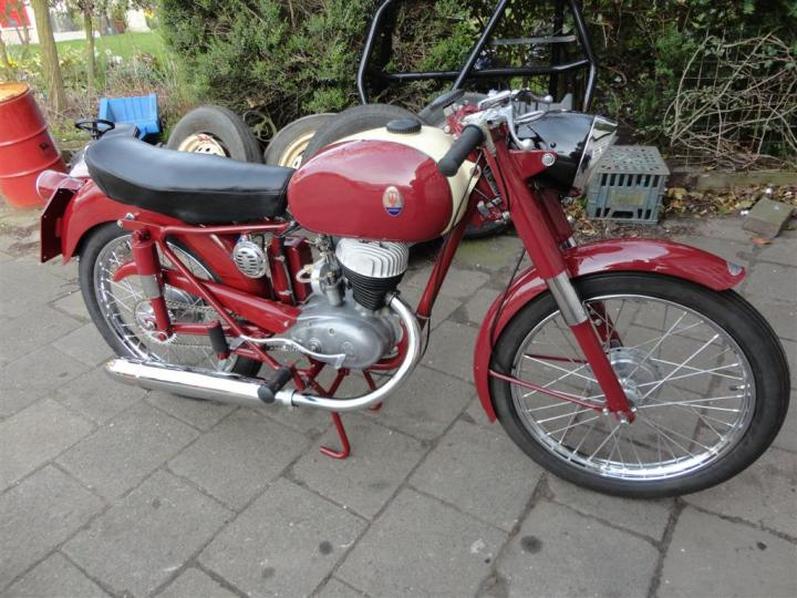 Hier een PERFECT gerestaureerde unieke Maserati 125 CC motor loopt rijdt zoals ie er uit ziet , PERFECT als een nieuwe .! Grote keus in motor- en bromfietsen in de Stolze Collectie!